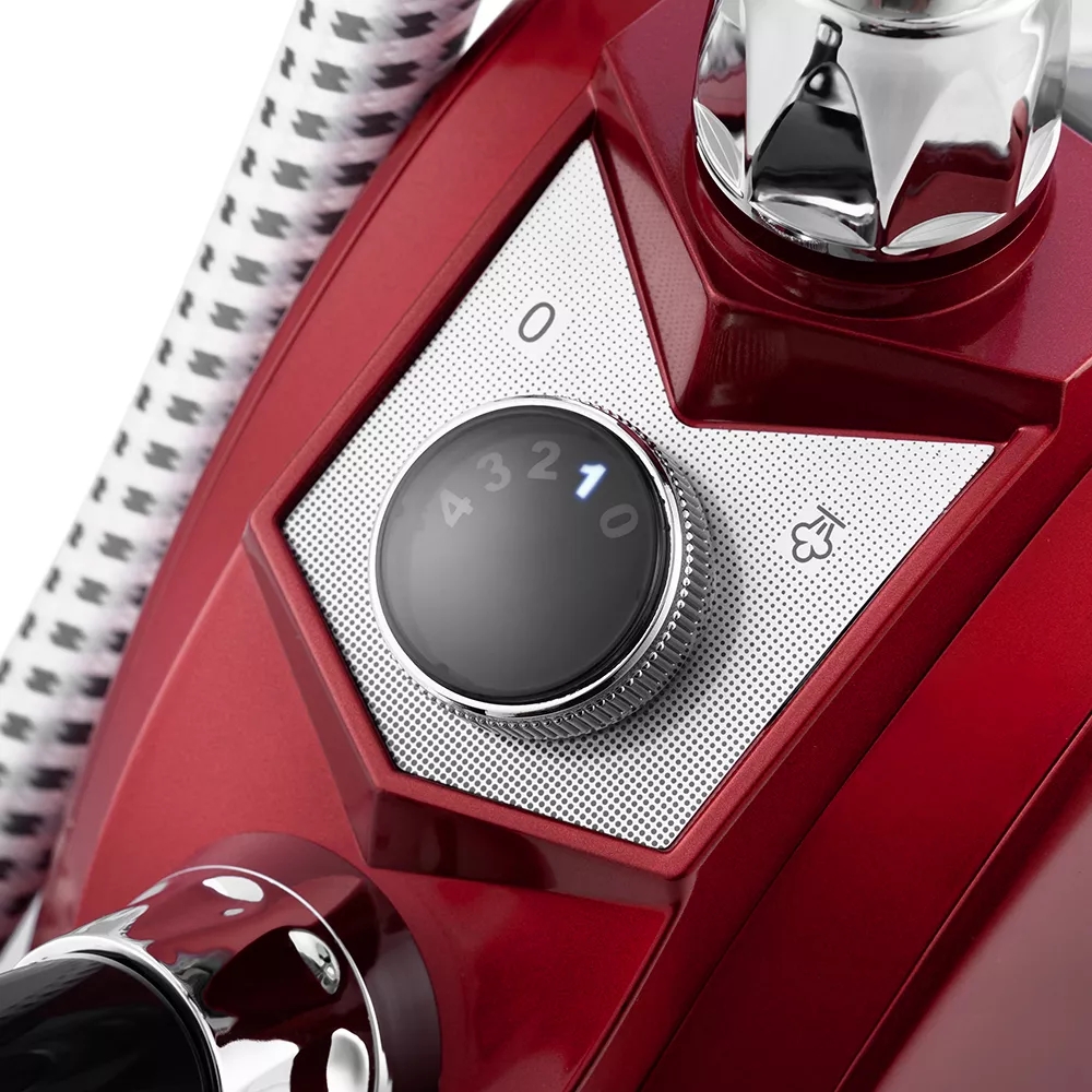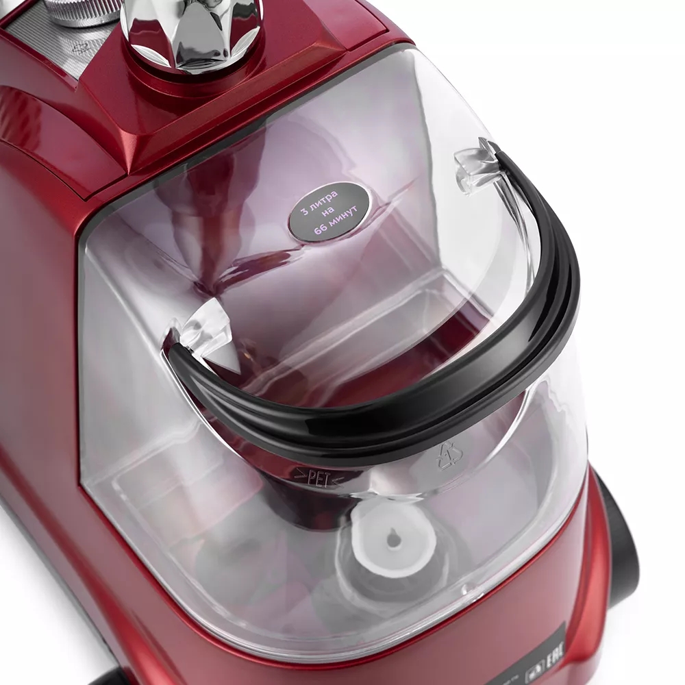 Отпариватель имеет 4 режима работы, где положение регулятора 1 - это минимальная подача пара, положение регулятора 4 - максимальная подача пара. Ёмкость съёмного резервуара составляет 3 л. Такого объёма хватит минимум на 66 минут беспрерывного отпаривания.