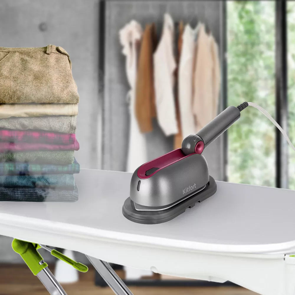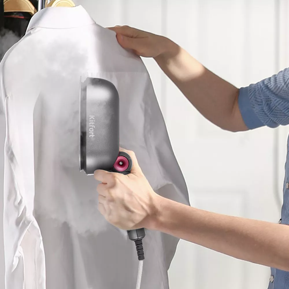 КТ-994 выполняет функцию и утюга, а благодаря специальному носику, можно прогладить труднодоступные места, например между пуговицами или под брошью. Во время глажки вы можете дополнительно включить подачу пара. Температура поверхности доходит до 140°C.