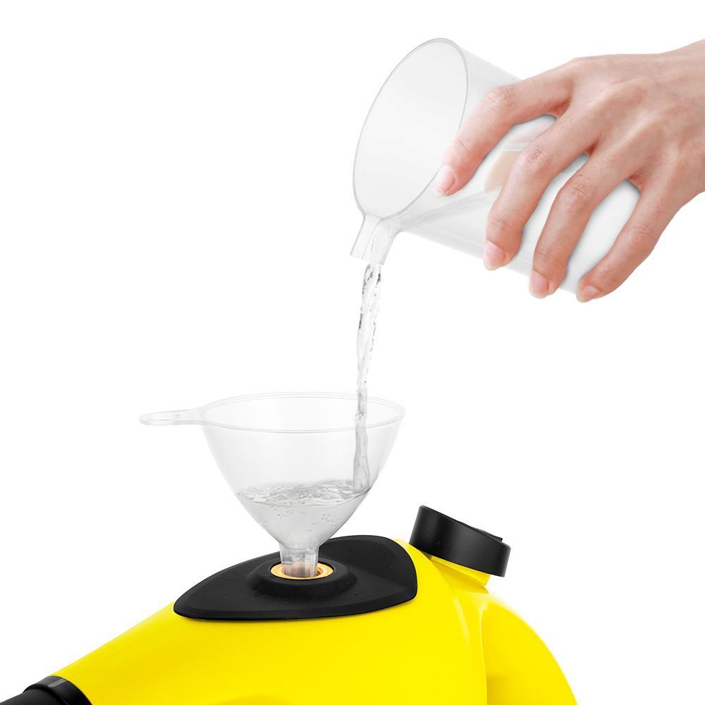 В комплекте с пароочистителем идёт воронка и мерный стакан, которые нужны, чтобы обеспечить удобство и безопасность процесса наливания воды в бойлер.
