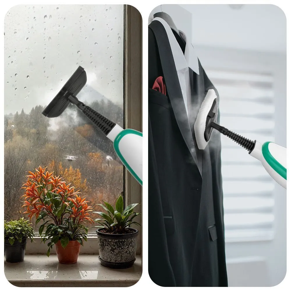 Чтобы помыть окна, зеркала и кафельную плитку, присоедините к парогенератору насадку для отпаривания со скребком для стекла, и прибор можно будет использовать как стеклоочиститель. Вы можете отпарить одежду или очистить обивку мягкой мебели.