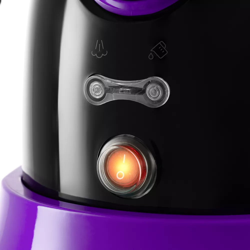 Управление располагается на паровом пистолете. Вращение регулятора позволяет плавно регулировать интенсивность пара. Кнопка подачи пара располагается под пальцем. Предусмотрен блокиратор от случайного нажатия или для включения непрерывной подачи пара.