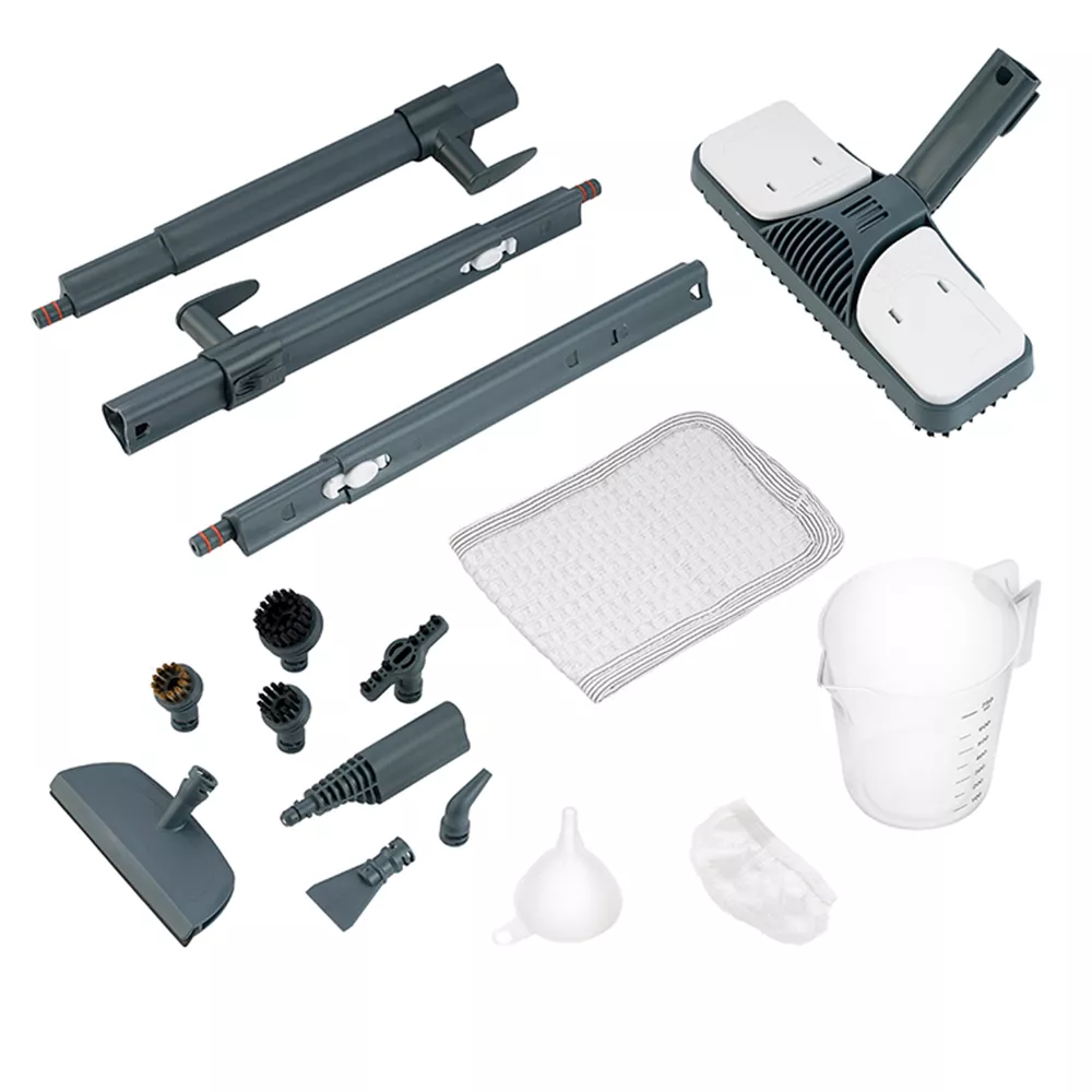 Пароочиститель имеет малый вес и габариты. Его можно использовать как дома, так и в офисах, гостиницах. При хранении не занимает много места. Имеет удобную складную ручку для переноски. Для вашего удобства предусмотрен отсек для хранения насадок, расположенный под пароочистителем.