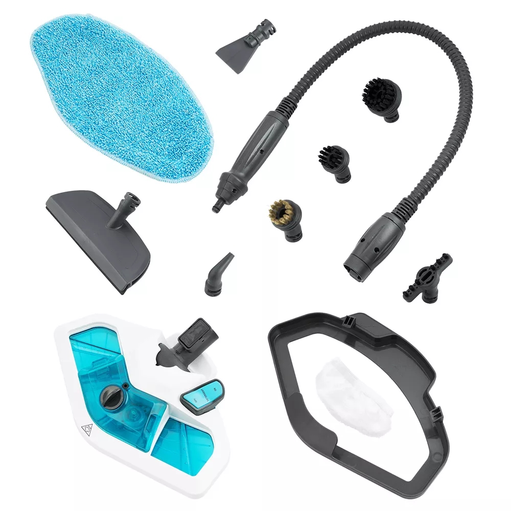 Устройство позволяет отсоединить удлинительную ручку и щётку для пола, тогда швабра превратится в ручной пароочиститель или отпариватель.