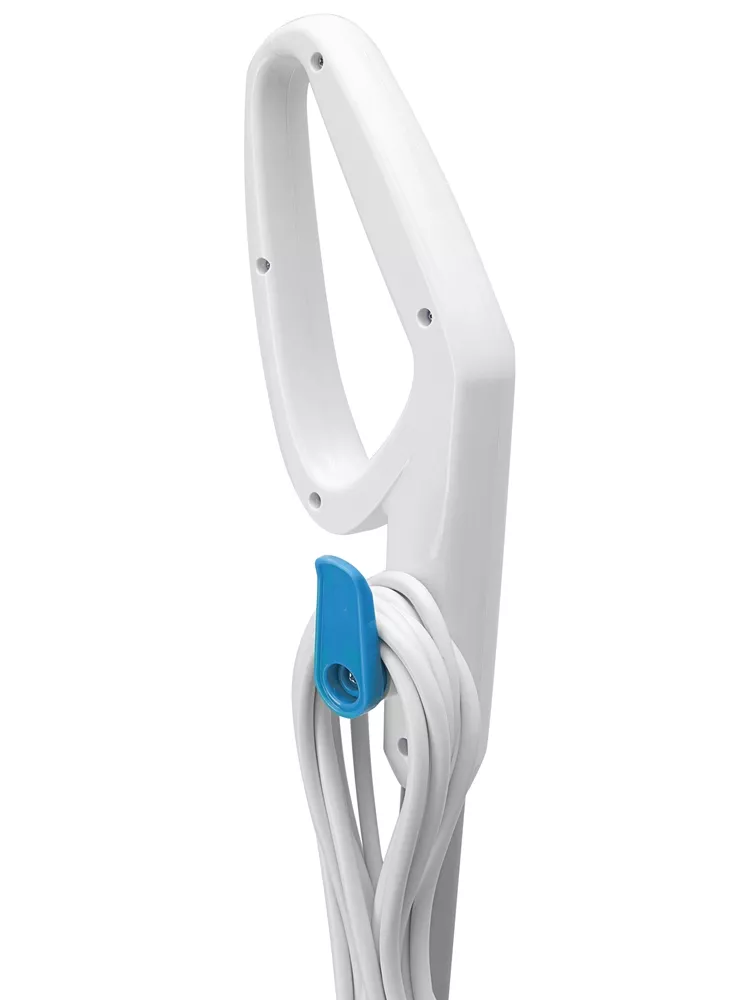 Паровая швабра может стоять вертикально без дополнительной поддержки. С помощью держателя на рукоятке, шнур не будет мешаться.
