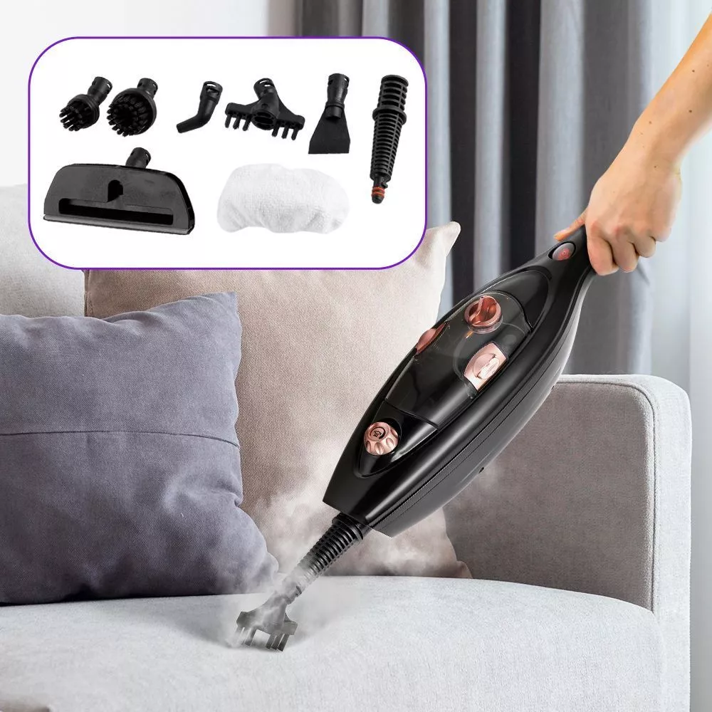 Чтобы помыть окна, зеркала и кафельную плитку, присоедините к парогенератору насадку для отпаривания со скребком для стекла, и прибор можно будет использовать как стеклоочиститель. Вы можете отпарить одежду или очистить обивку мягкой мебели.