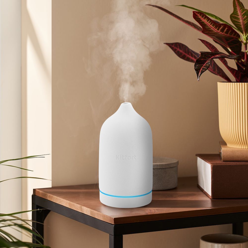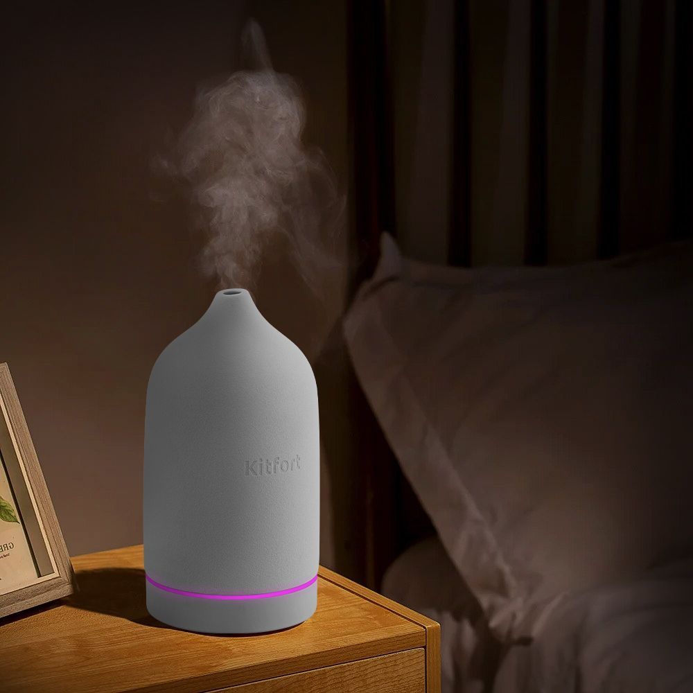 У увлажнителя КТ-2892 можно включить подсветку с плавной сменой цветов или выбрать один постоянный цвет подсветки. Если включить подсветку без включения подачи тумана, то устройство может использоваться как ночник.