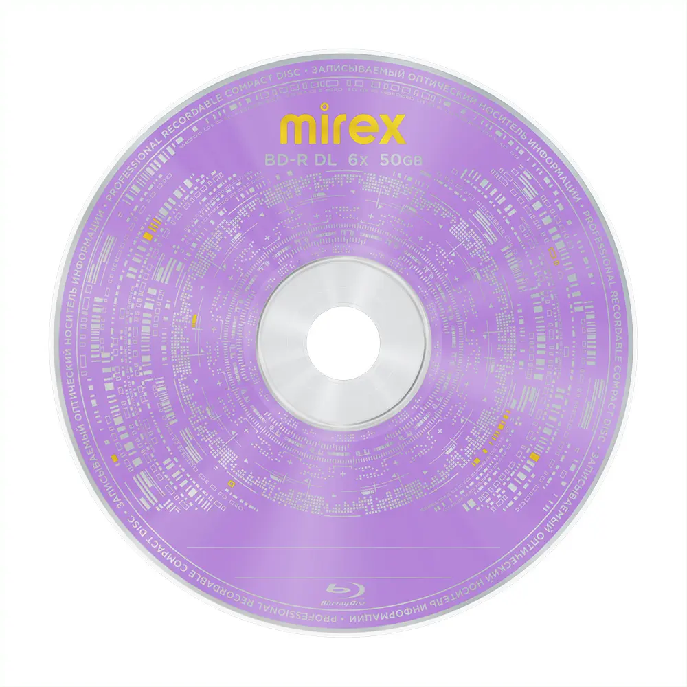 Blu-Ray диски Mirex произведены в соответствии с мировым стандартом и совместимы с любыми приводами, поддерживающими соответствующий формат чтения и записи. Поддерживает скорость передачи данных 6X, что соответствует 216 Мбит/с. Время записи составляет 30 минут. Емкость 50 Гб позволяет вместить информации в 10 раз больше, чем на стандартный DVD-диск объемом 4,7 Гб.