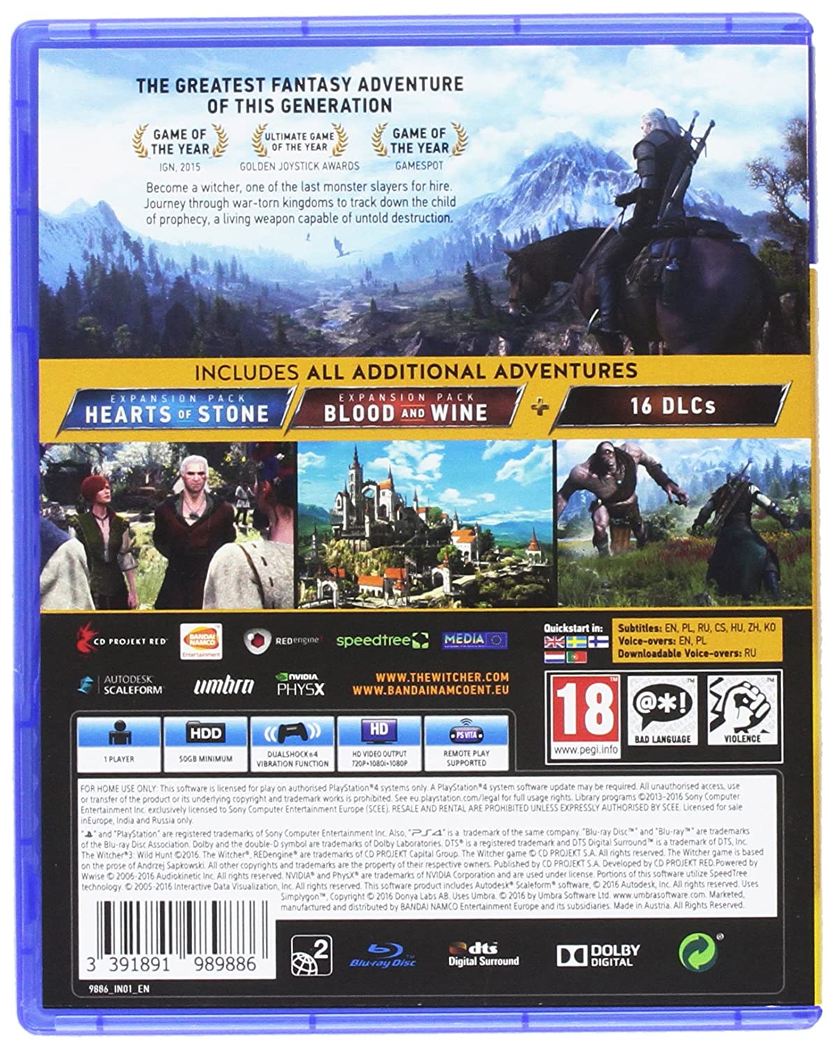 • Полная версия игры Ведьмак 3: Дикая Охота• Дополнение «Кровь и вино»