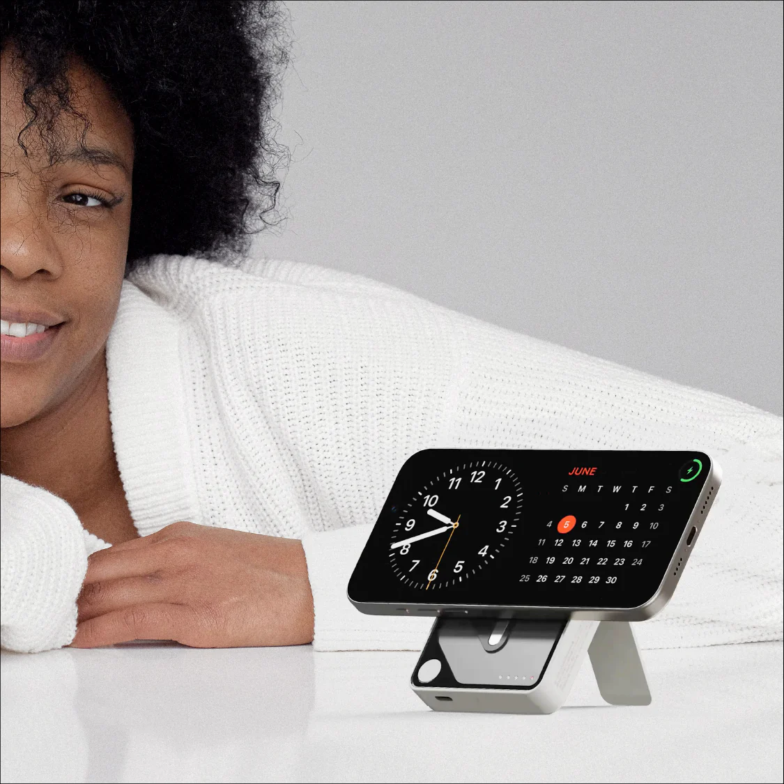 Металлическая подставка позволяет использовать устройство без рук или удобно поддерживать его во время зарядки. Это делает процесс зарядки еще более комфортным и практичным.