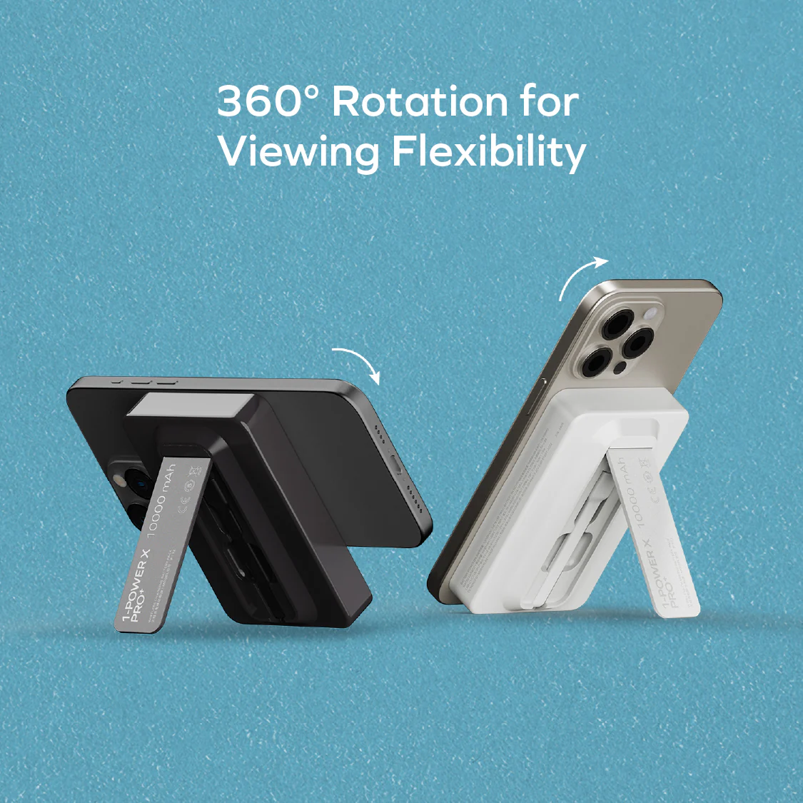 1-Power X Pro+ позволит вам заряжать до 3-х устройств одновременно! Используйте беспроводную зарядку или USB-C порт с помощью встроенного кабеля, который позволяет заряжать устройства напрямую, избавляя вас от запутанных проводов.