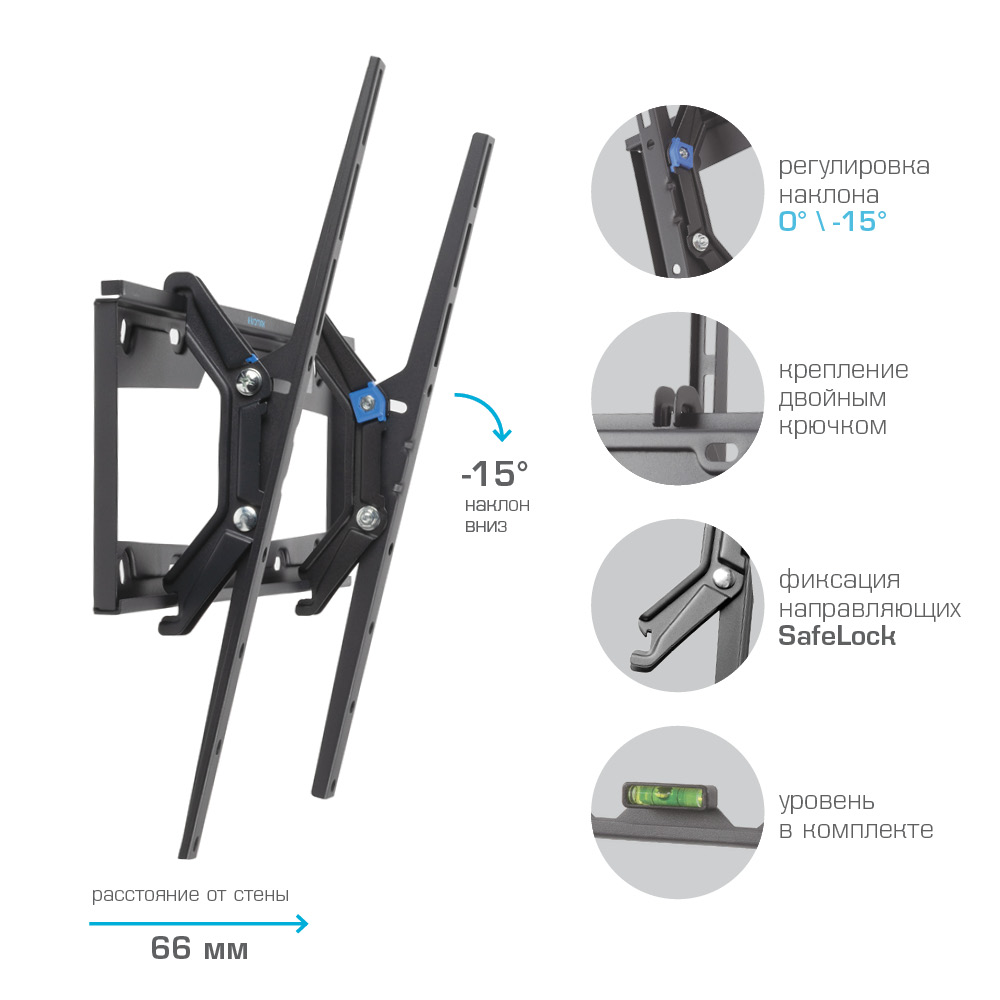 Комплектация Кронштейн для телевизора, комплект крепежа для установки ТВ, навесной уровень, подробная инструкция на русском языке