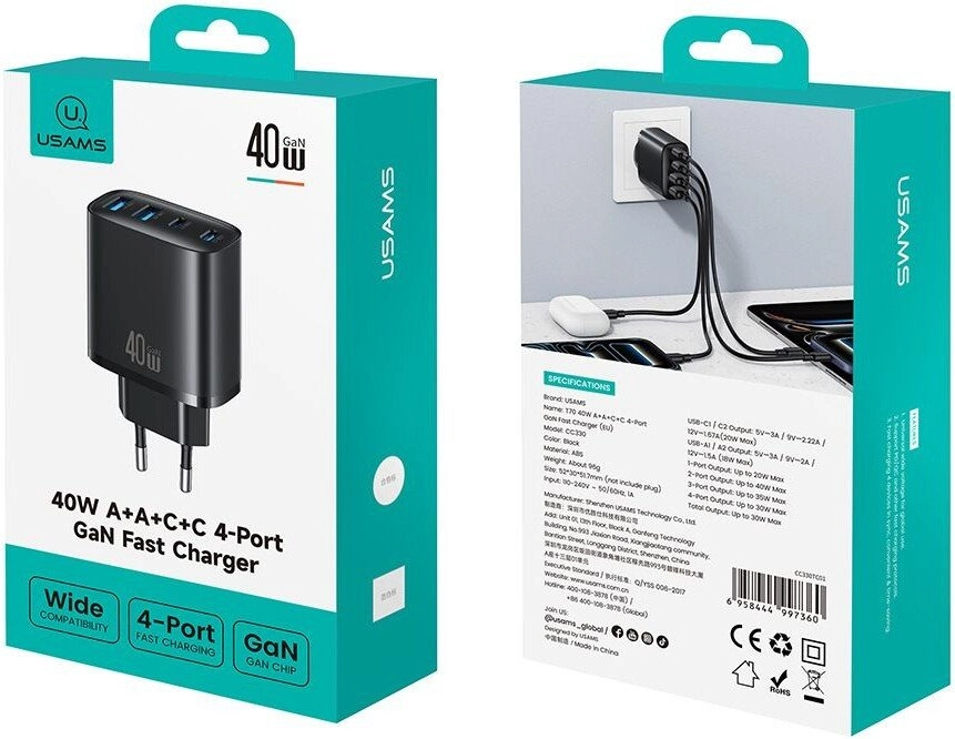 Сетевое зарядное устройство USAMS T70 40W GaN 4‑Port Charger — это универсальный четырехпортовый адаптер питания, выполненный с использованием передовой технологии нитрида галлия (GaN). Благодаря компактным размерам устройство обеспечивает высокую энергоэффективность и позволяет одновременно заряжать несколько гаджетов.