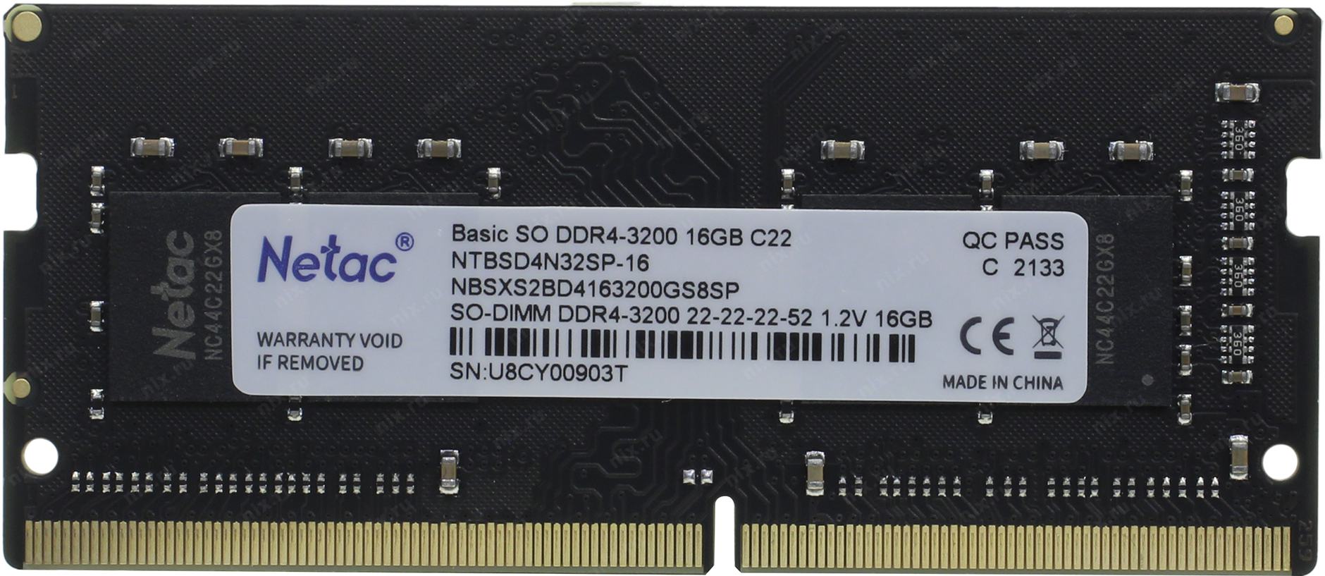 Описание Netac Basic SODIMM 16GB DDR4-3200 (PC4-25600) C22 22-22-22-52 1.2V Memory module