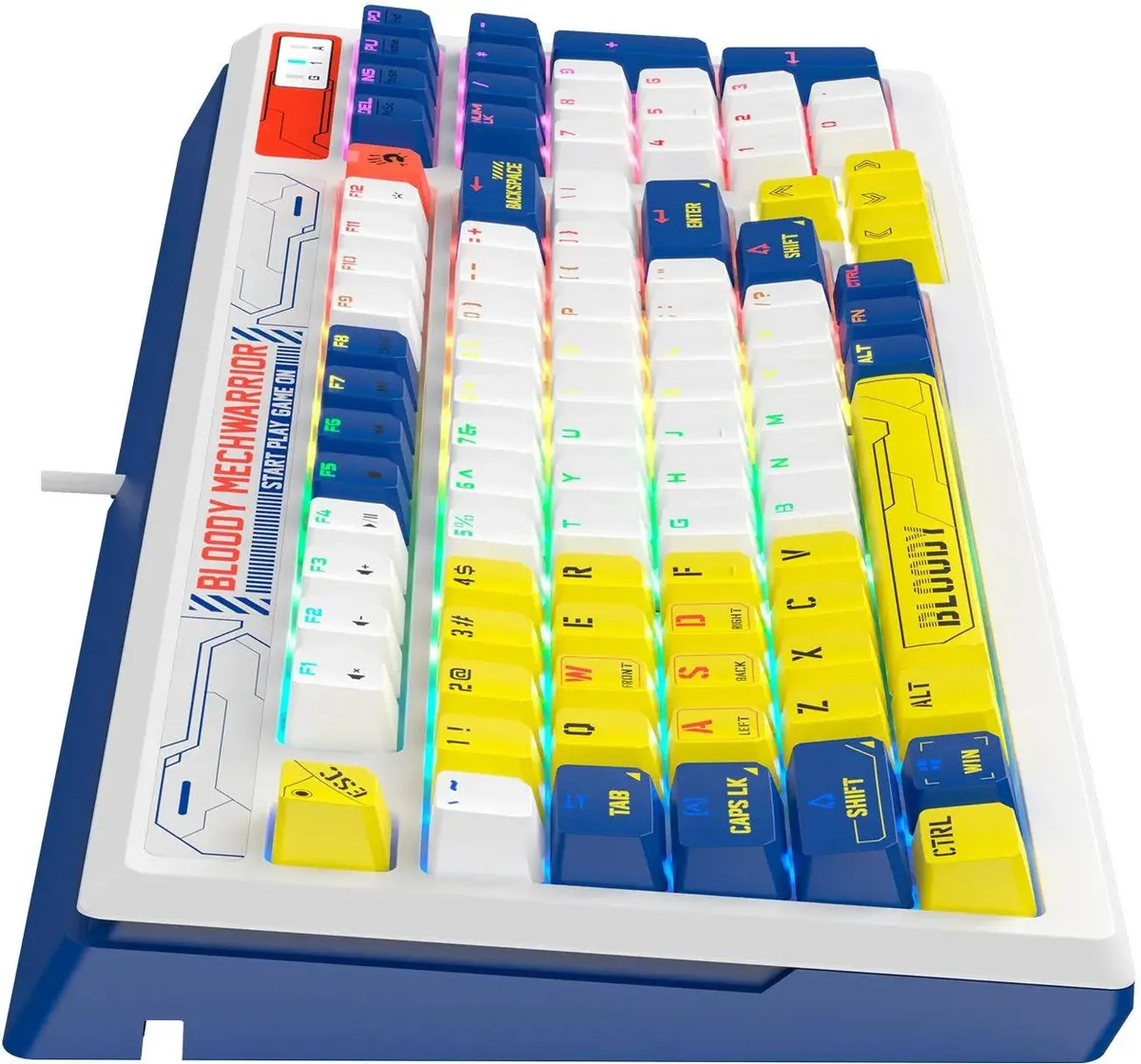 • Большинство кейкапов для игровых клавиатур изготовлены из материала PBT (полибутилентерефталат), благодаря его долговечности. Кейкапы из PBT от Bloody имеют малый вес и быстро возвращаются в исходное положение во время игры.