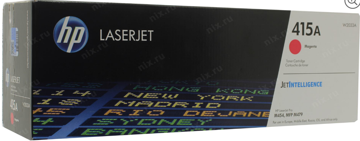 Оригинальный картридж HP 415A, серия JetIntelligence, модель W2033A (№415A) (пурпурный). Ресурс 2100 страниц. Совместимость HP LaserJet Pro M454, MFP M479