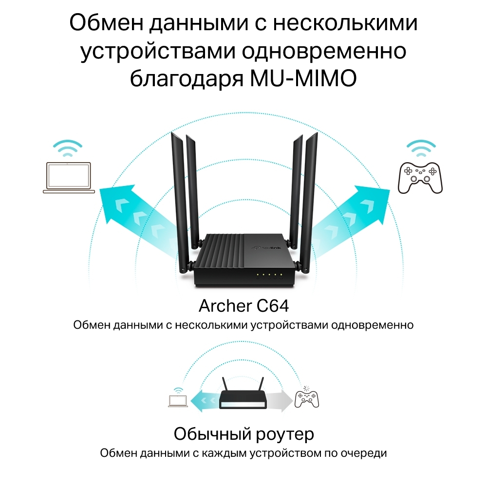 • Wi-Fi 802.11ac Wave 2 — до 867 Мбит/с на 5 ГГц, до 300 Мбит/с на 2,4 ГГц.• Широкое покрытие Wi-Fi — четыре антенны обеспечат стабильное Wi‑Fi подключение и оптимальное покрытие.