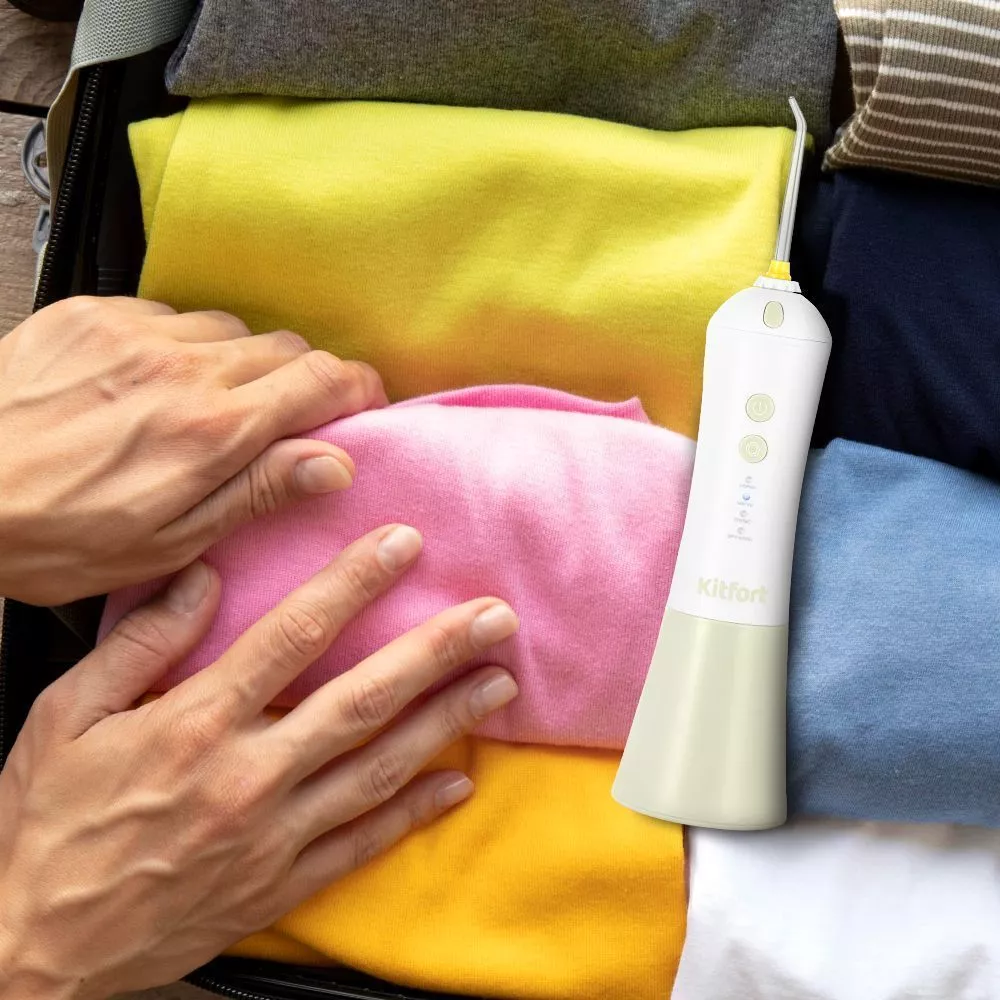 Ирригатор лёгкий и компактный. Его удобно брать с собой в отпуск, в деловую поездку или даже на работу. Это будет особенно полезно для людей, которые носят брекет-системы и вынуждены чистить зубы и полость рта после каждого приёма пищи.