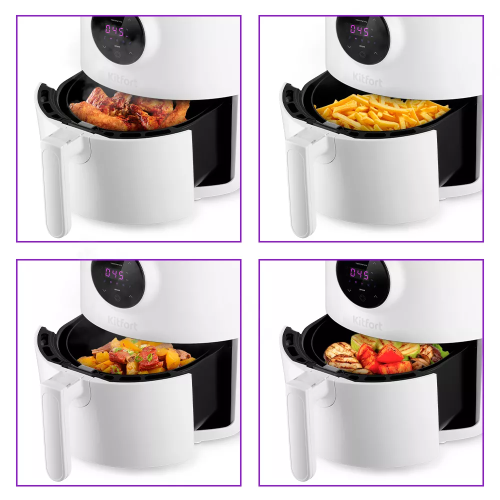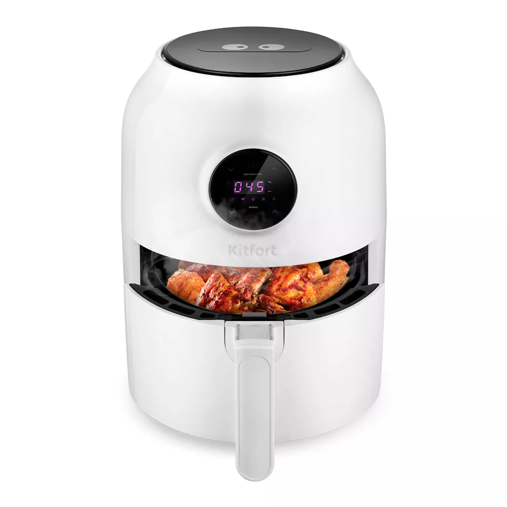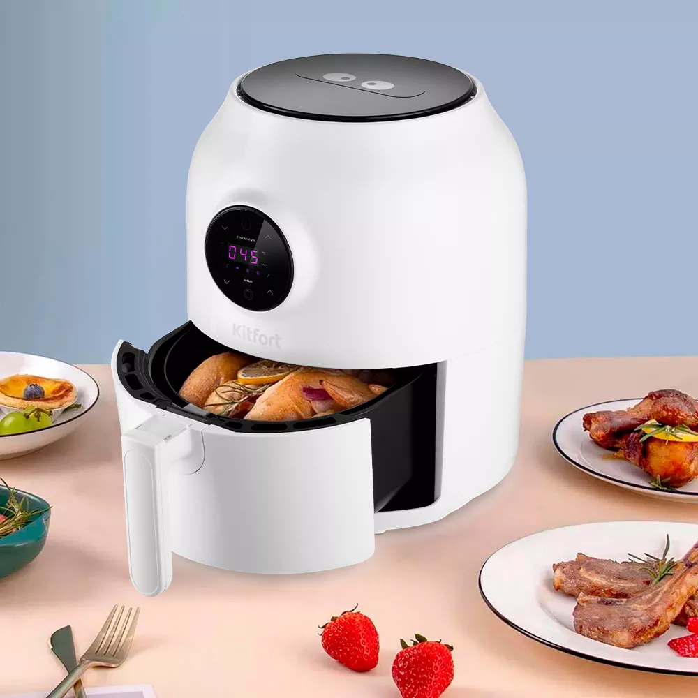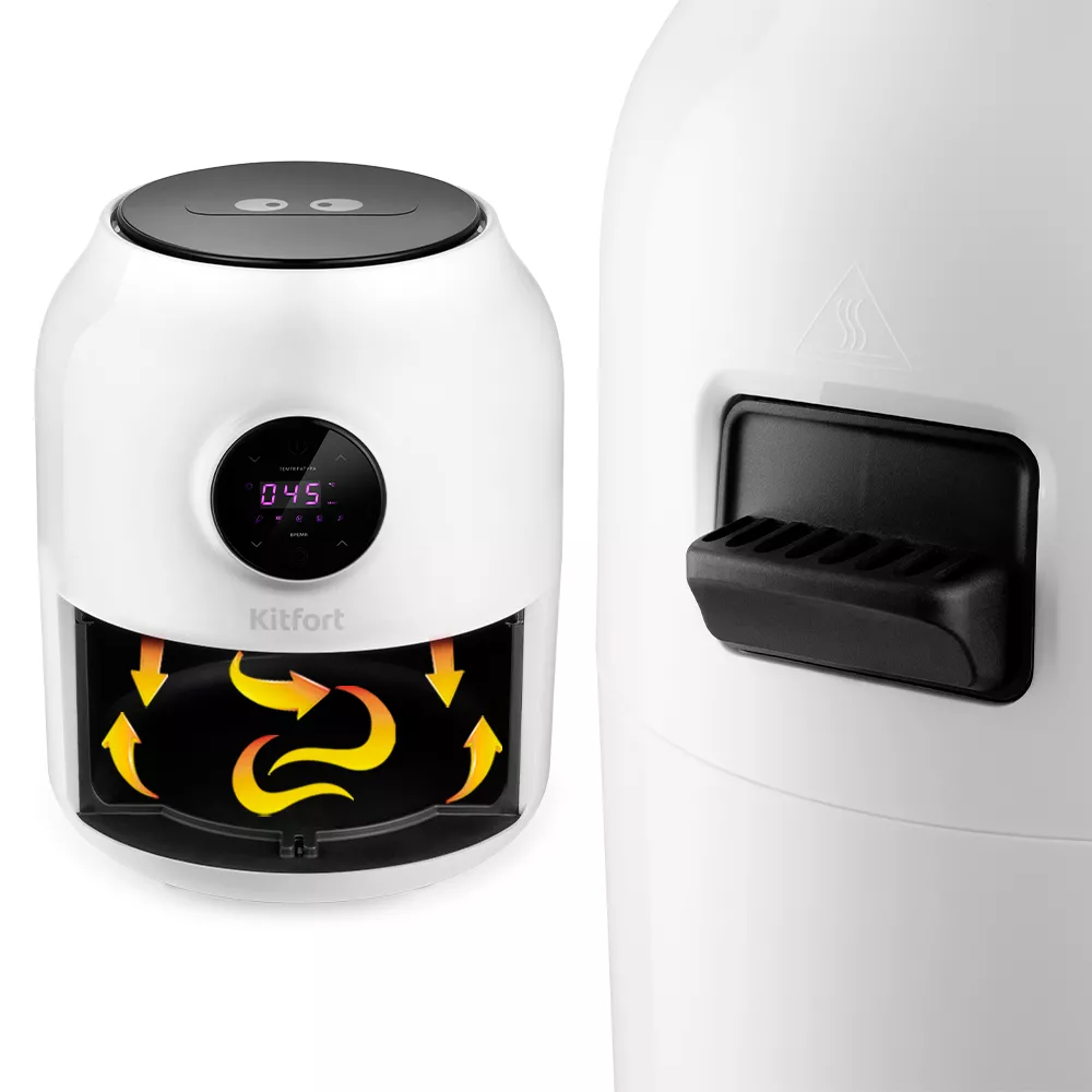 Аэрогриль КТ-2235 имеет оригинальную форму и лаконичный дизайн. Он отлично впишется в вашу кухню, а благодаря небольшому размеру не займёт много места на вашей кухне.