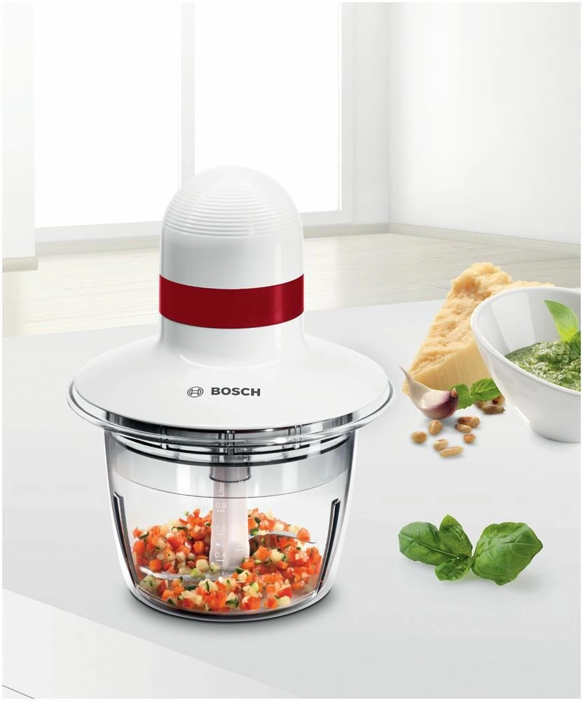 Универсальный измельчитель Bosch MMRP1000 — это компактный и мощный помощник на вашей кухне, который берет на себя всю рутинную работу. Прибор оснащен функцией импульсного режима, которая позволяет вам моментально запускать и останавливать процесс, обеспечивая идеальную степень измельчения каждый раз — от нежного паштета до мелко нарезанных овощей для салата. Стильный дизайн в бело-красной гамме серии «YourCollection» станет ярким акцентом в интерьере.