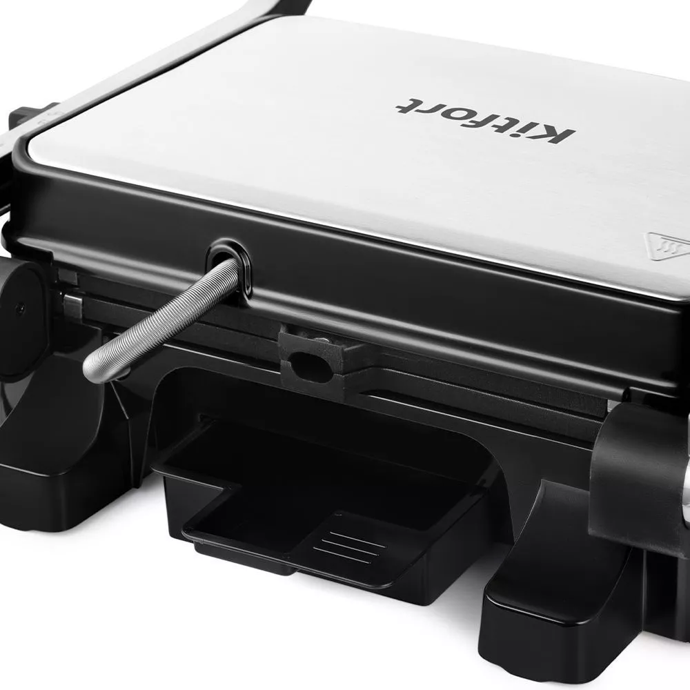 С помощью КТ-1687 вы можете готовить как в двухстороннем, так и в одностороннем режиме. В одностороннем режиме крышка гриля откидывается на 180°, и гриль превращается в большую жаровню. Для приготовления можно использовать обе поверхности.