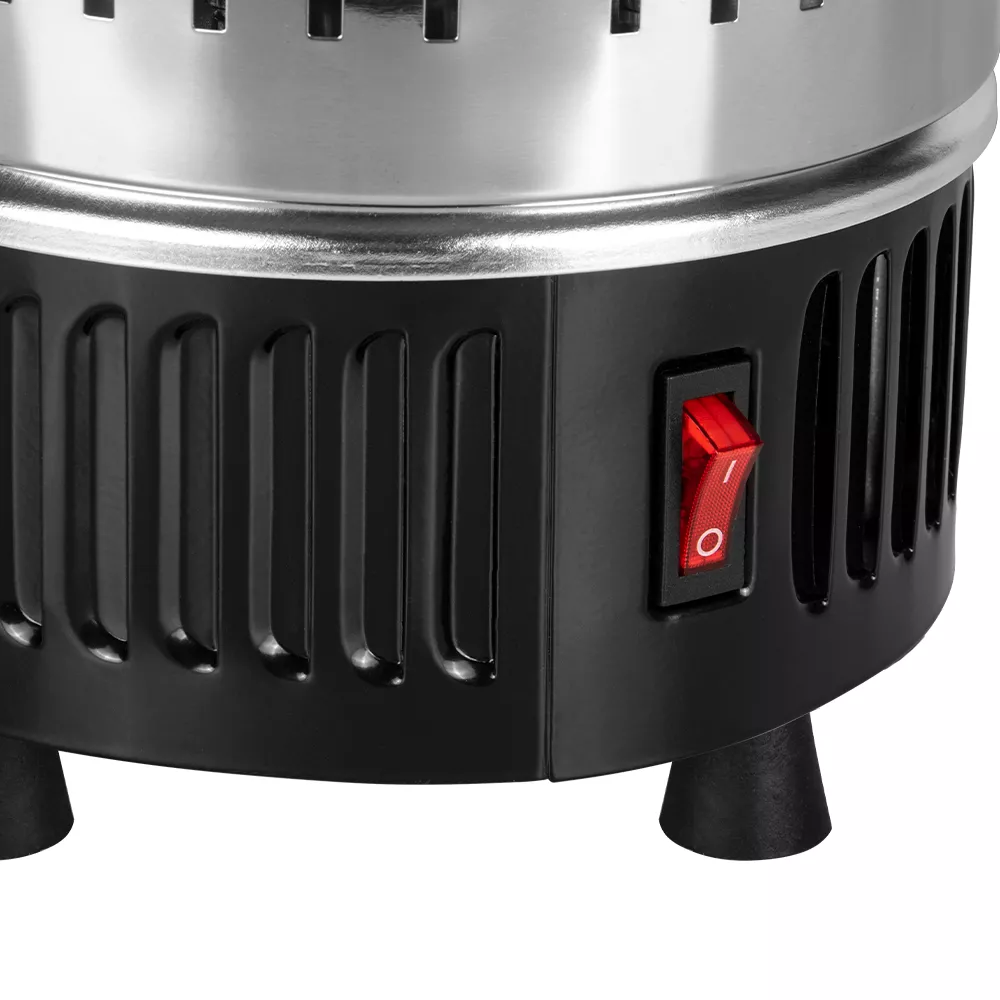 Съёмный металлический кожух выполняет защитную функцию, а также препятствует рассеиванию жара. Кроме того, кожух и шампуры оснащены удобными ручками из ненагревающегося материала, поэтому их можно брать руками, не боясь обжечься.