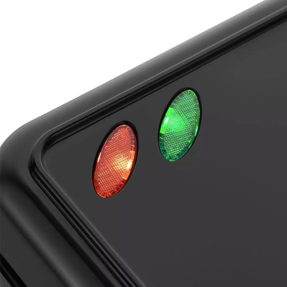 Индикатор работы горит, когда прибор включен в сеть. Индикатор нагрева загорается, когда панели достигают нужной температуры. Во время приготовления продуктов панели гриля остывают, поэтому нагрев будет периодически включаться для поддержания температуры.