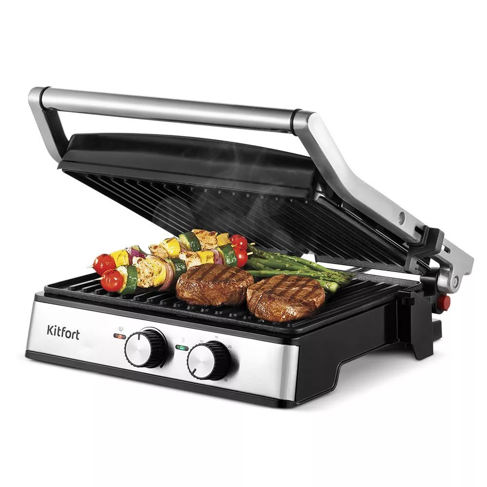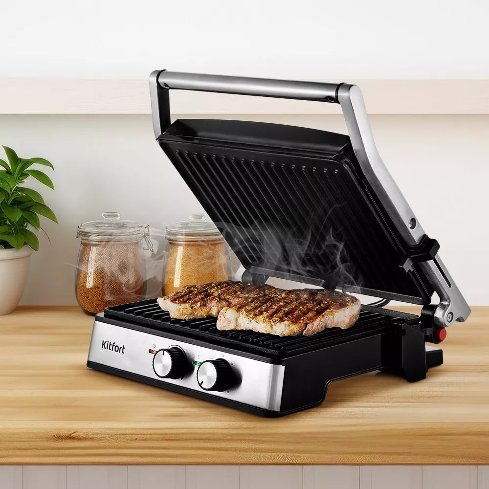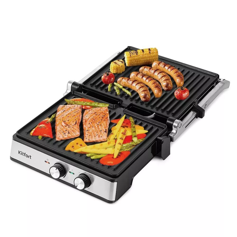 Электрогриль КТ-3601 станет отличным помощником в приготовлении завтрака, обеда или ужина для всей семьи. Ребристая поверхность способствует появлению на них характерного «полосатого» рисунка. Кроме того, он прост в уходе.