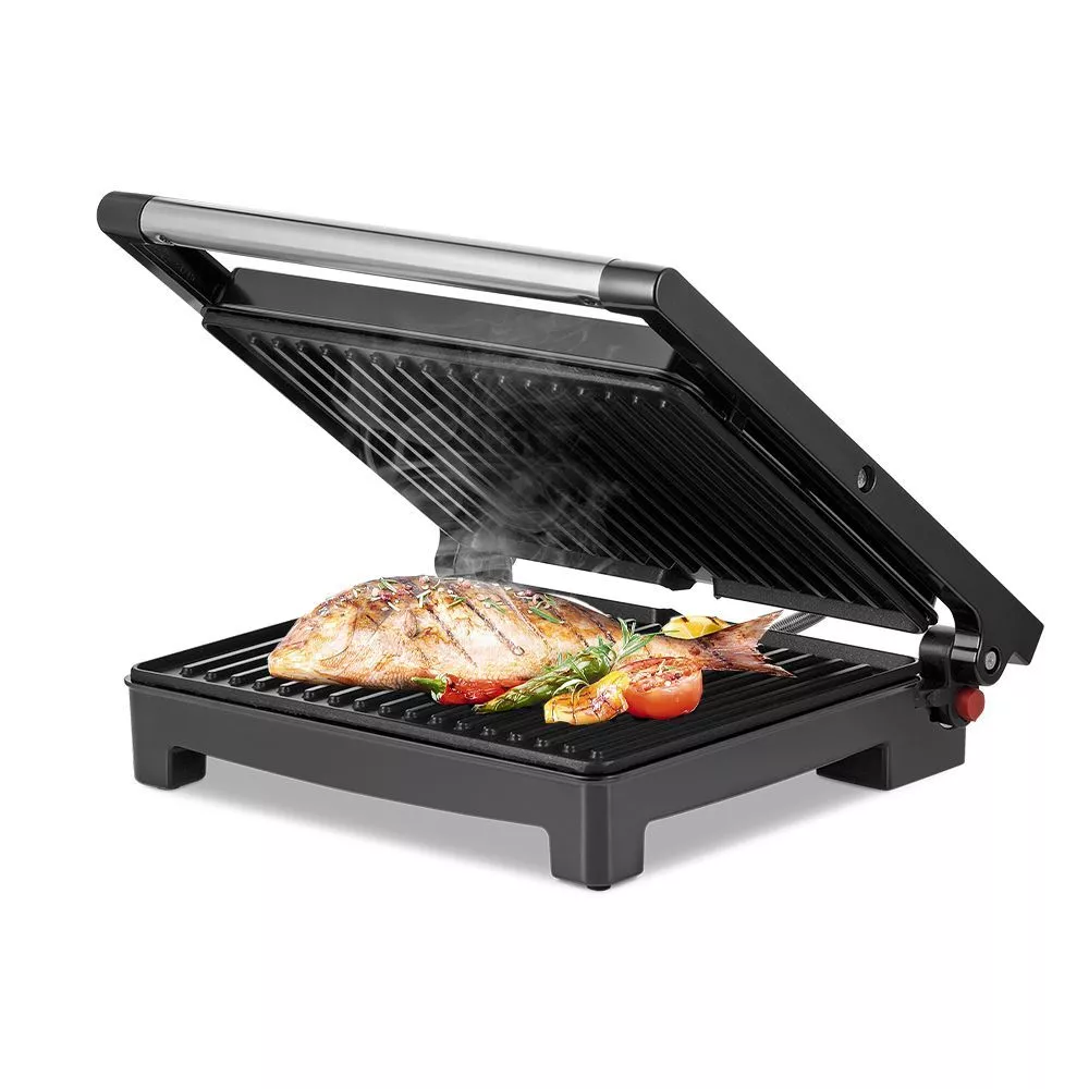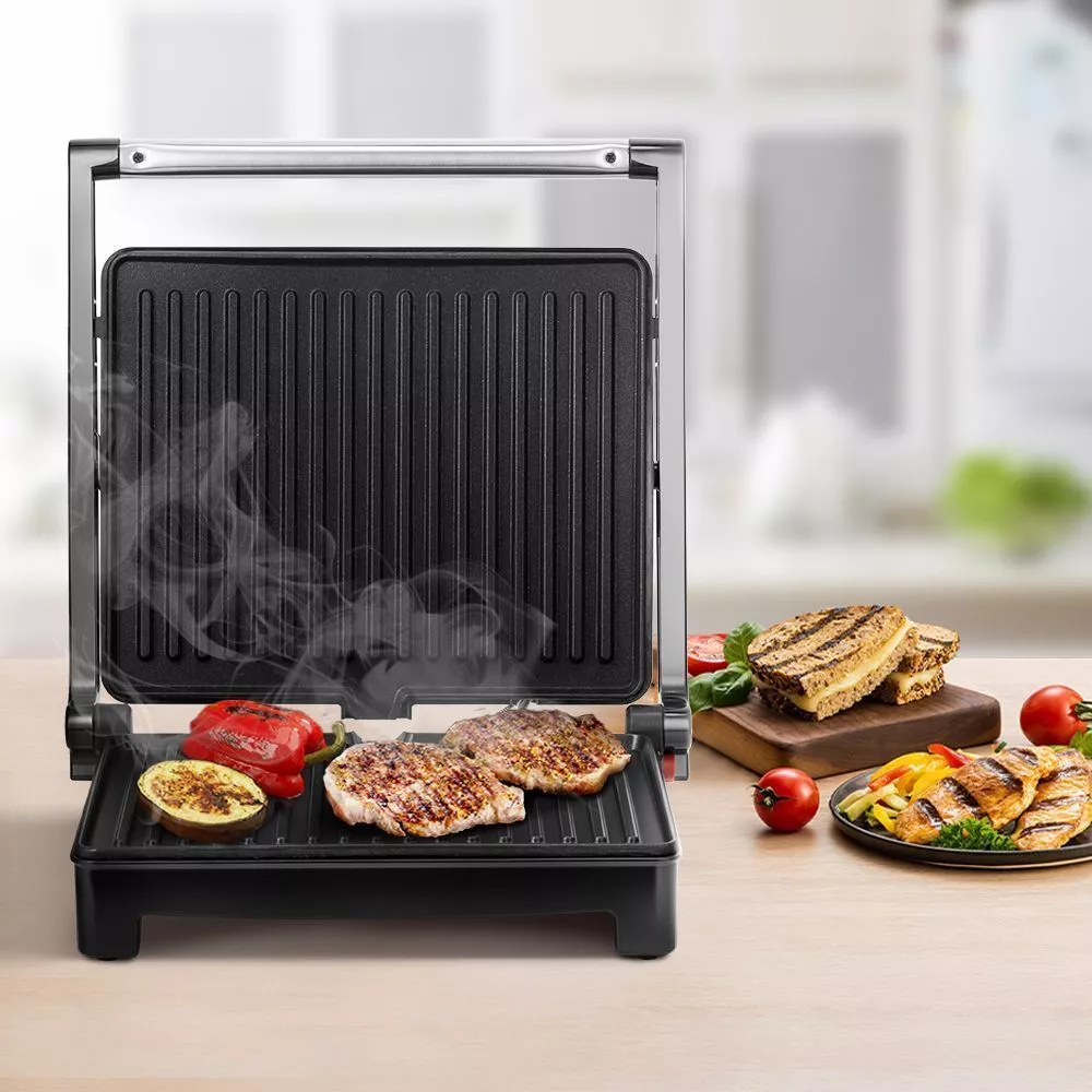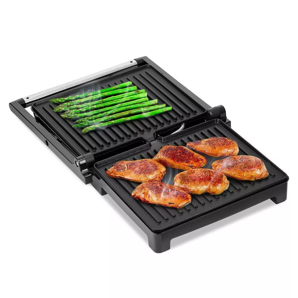 Нагревательные панели изготовлены из алюминия с нанесённым антипригарным покрытием. Ребристая поверхность способствует появлению на них характерного «полосатого» рисунка. Это позволяет использовать минимум масла или готовить вовсе без него.