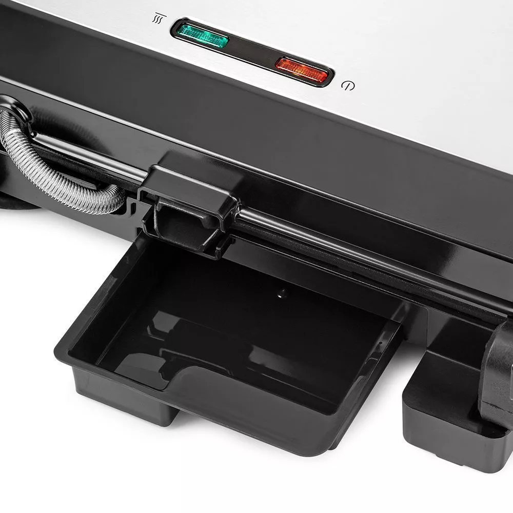 В процессе приготовления продуктов образуются жир и сок, которые стекают в поддон для сбора жира. Просто выньте поддон и помойте его с моющим средством. Ваша кухня останется чистой!