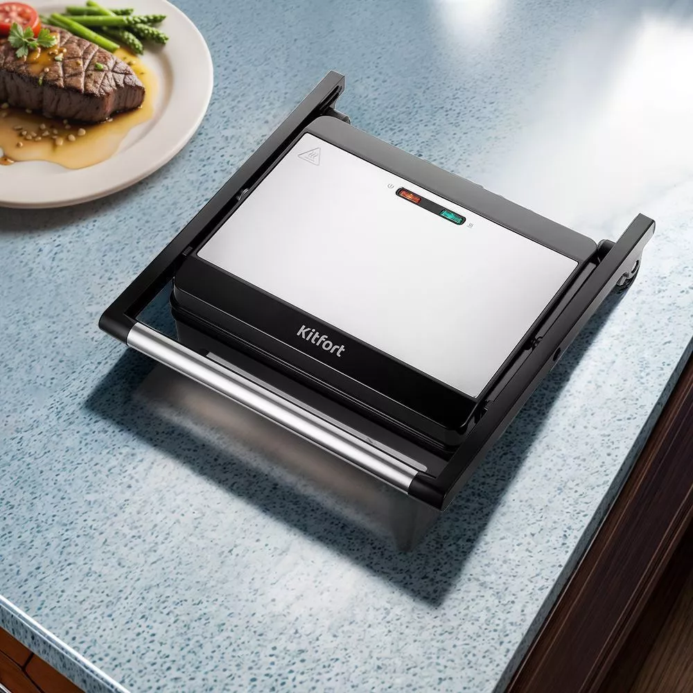 Конструкция гриля позволяет готовить в двух режимах. В двухстороннем режиме гриль закрывается крышкой, и продукты готовятся одновременно с двух сторон. В одностороннем режиме крышка гриля откидывается на 180°, и гриль превращается в большую жаровню. КТ-3660 предусматривает приготовление продуктов с закрытой крышкой. При таком приготовлении продукты находятся между двух панелей и готовятся равномерно с двух сторон.