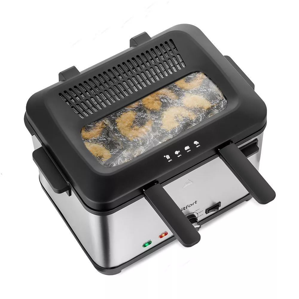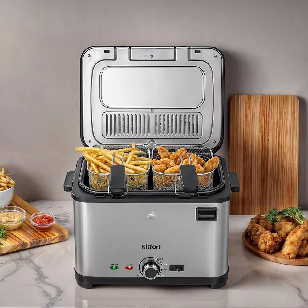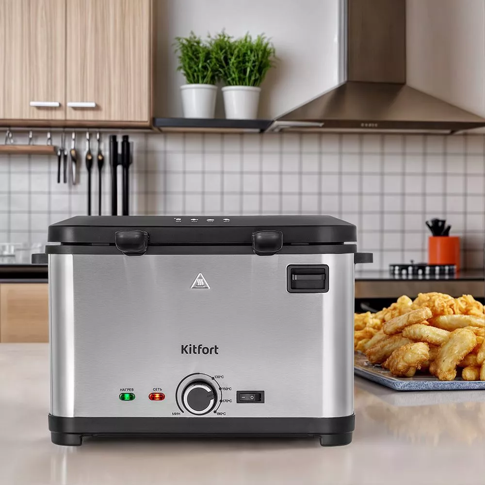 В крышке фритюрницы имеется окно, через которое вы сможете следить за готовностью блюда. Крышка прибора съёмная, что упрощает уход за фритюрницей. В крышке находится фильтр, который сдерживает распространение запаха и маслянистых испарений во время жарки.