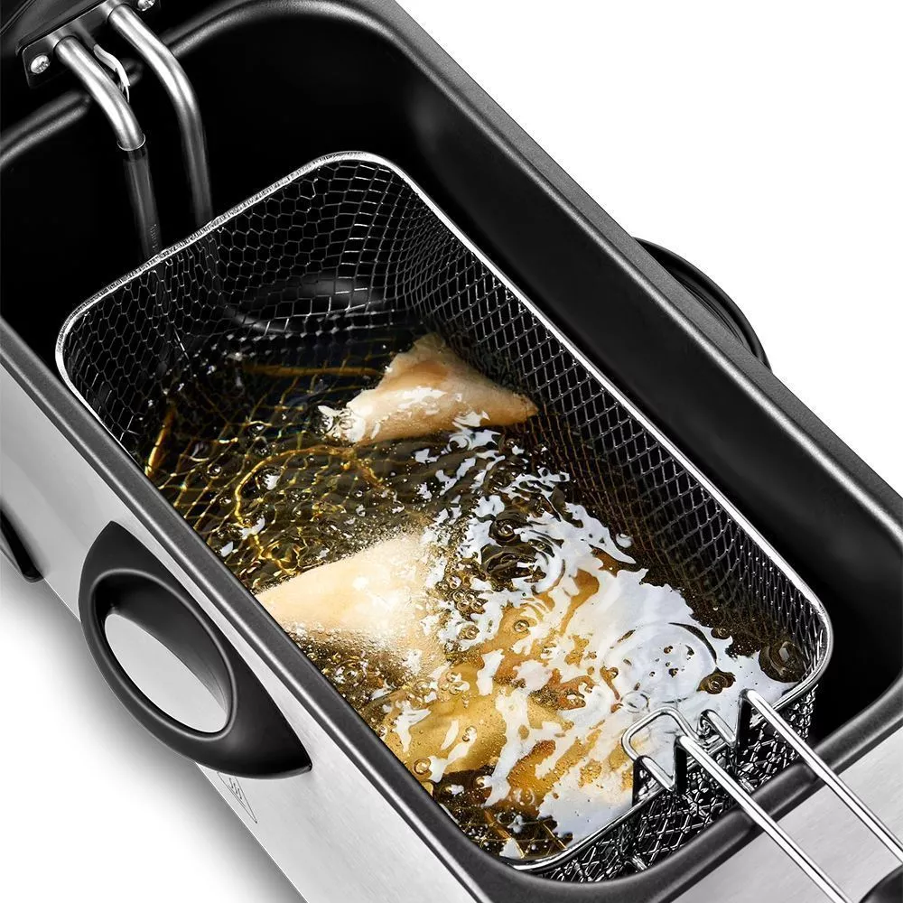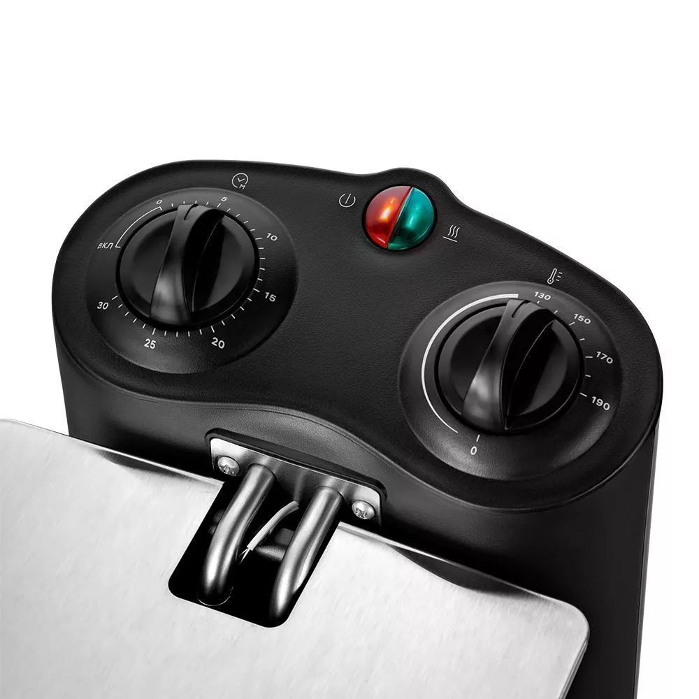Регулятором выбирается температура приготовления от 130 до 190 °С. Индикатор питания горит, когда устройство включено. Индикатор нагрева сигнализирует о том, что идёт процесс нагрева. По достижению заданной температуры он гаснет. Боковые ручки, ручки крышки и корзины выполнены из термостойкой пластмассы. Благодаря им прибор легко переставлять с места на место, а крышку и корзину снимать даже во время приготовления без риска обжечься.