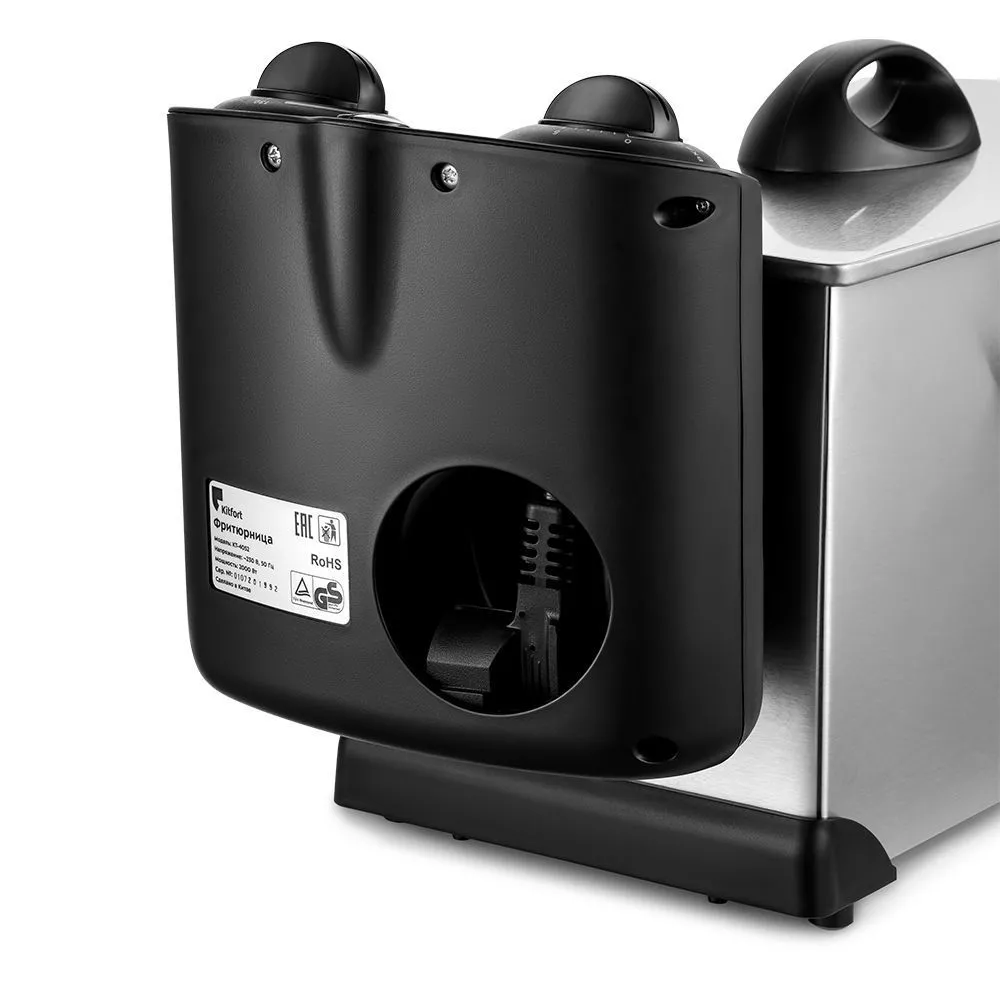 Фритюрница имеет отсек для хранения шнура питания на задней части блока управления с нагревателем.