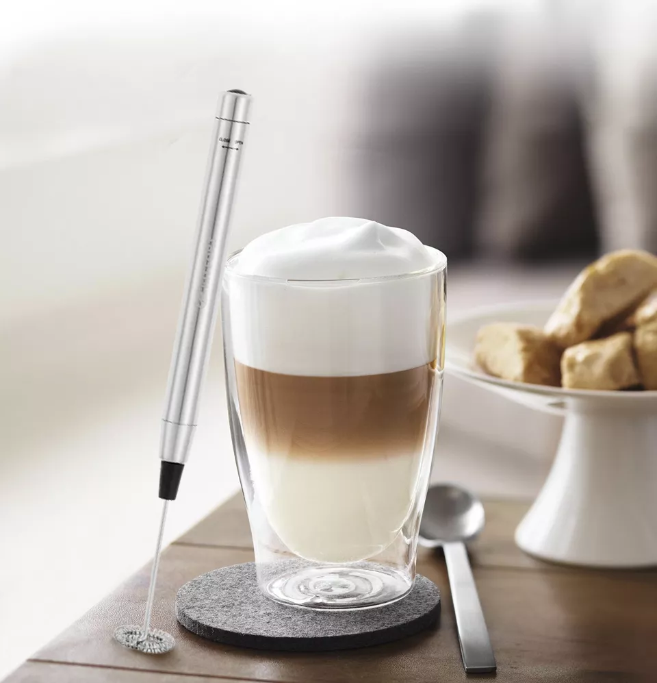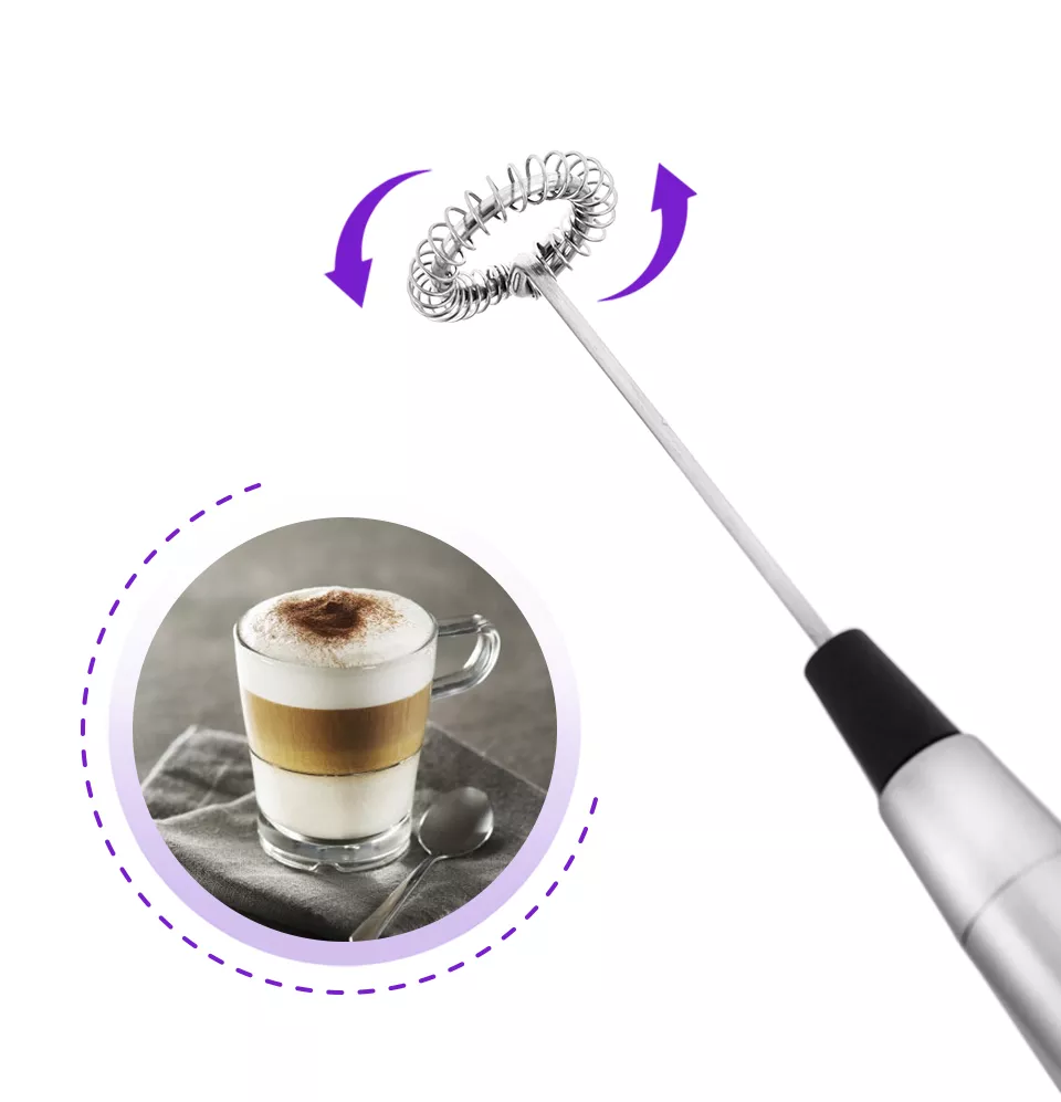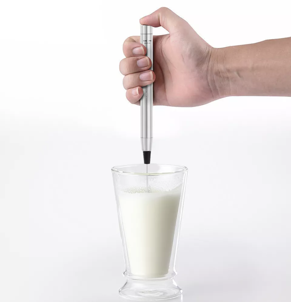 Ручной венчик для взбивания молока выполнен в утончённом стиле. Благодаря его компактному размеру, его можно без труда хранить даже в ящике со столовыми приборами.