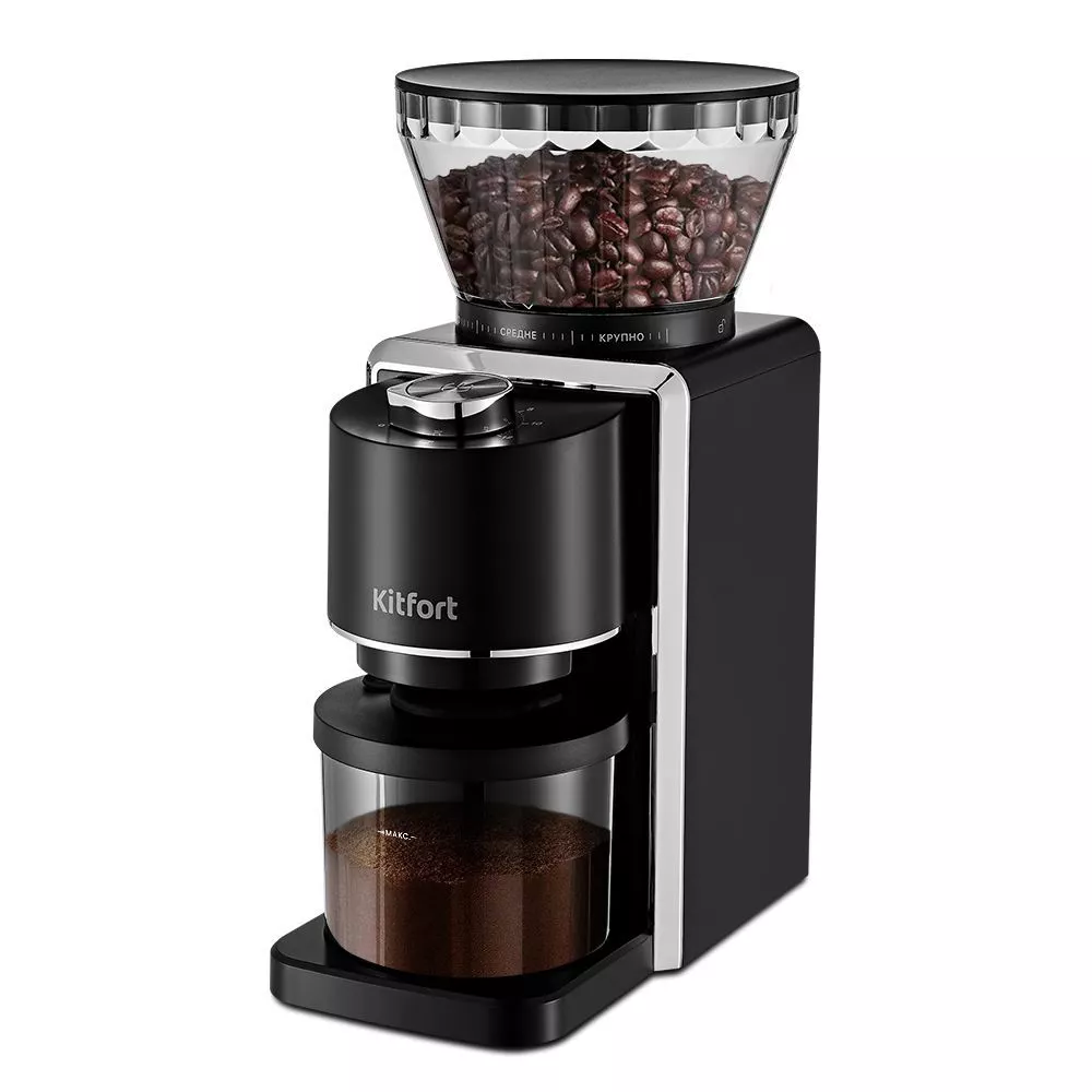 Кофемолка отличается высокой производительностью в 200 Вт, и за 1 цикл работы способна измельчить до 130 г продукта! Даёт равномерный помол и не перегревает кофе в отличие от роторных кофемолок. Нескользящие ножки делают прибор устойчивее на поверхности.