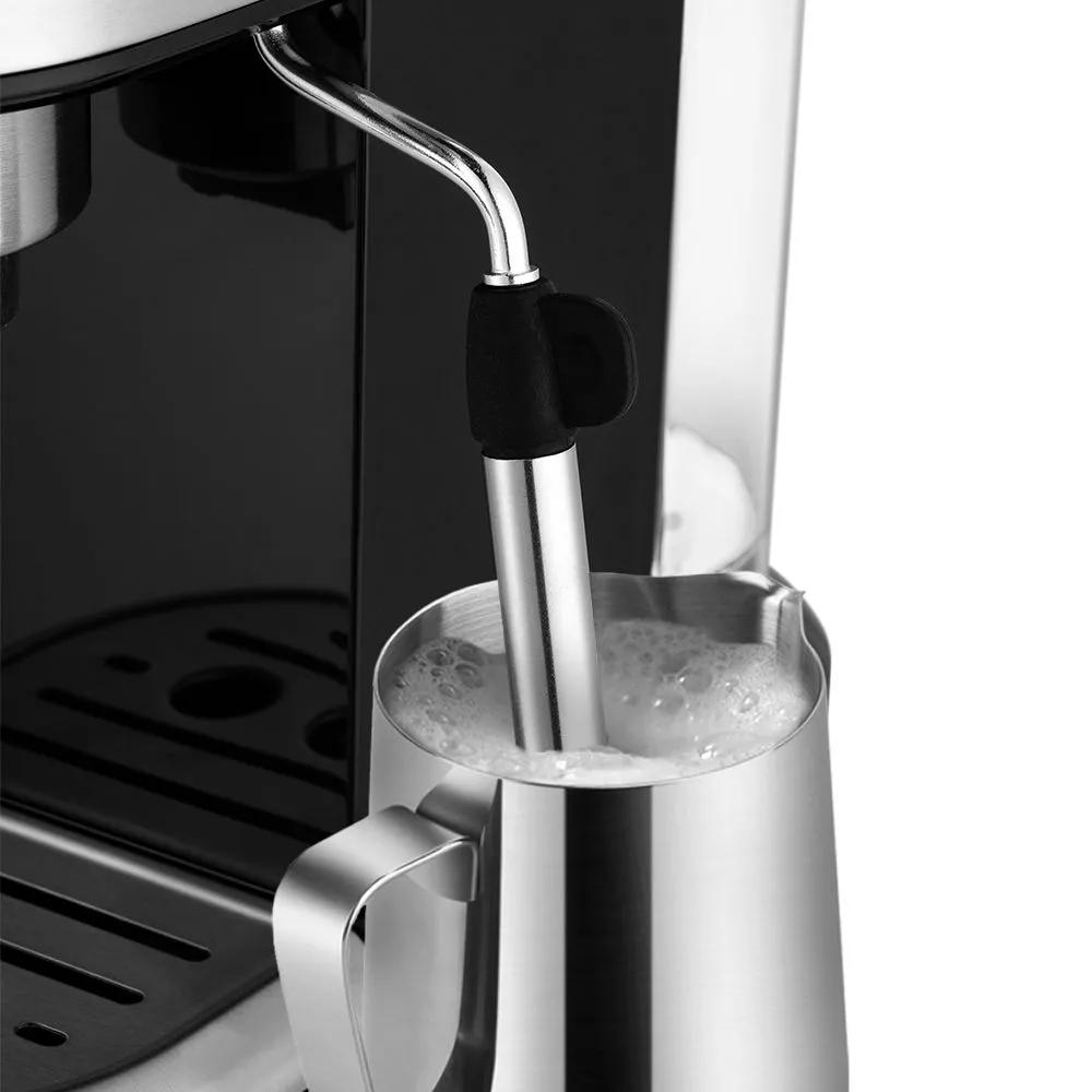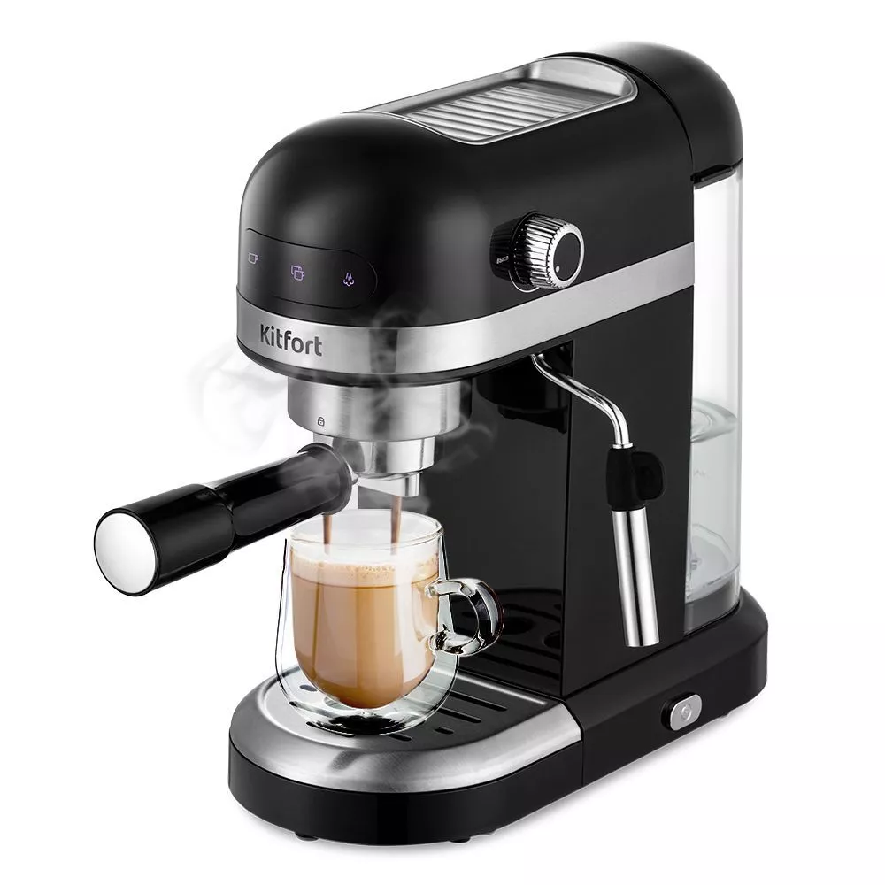 На корпусе есть панель управление, на которой можно выбирать какой эспрессо приготовить, а также включить и отключить нагрев бойлера до температуры кипения воды и для подачи пара.