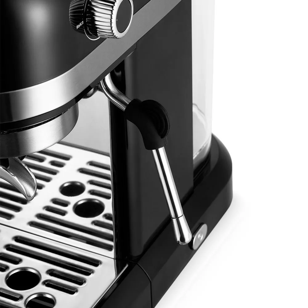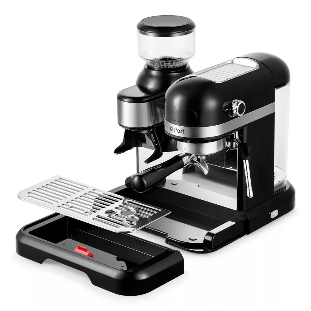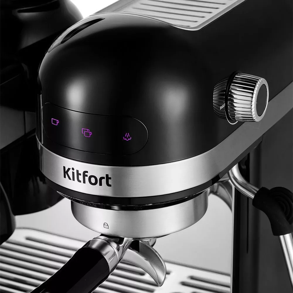 Капучинатор в кофемашине КТ-7126 – это паровая трубка с насадкой панарелло. Трубку погружают в холодное молоко, включают подачу пара и взбивают пенку. Также можно подогреть остывший чай или молоко. Для удобства у стимера предусмотрена силиконовая ручка.