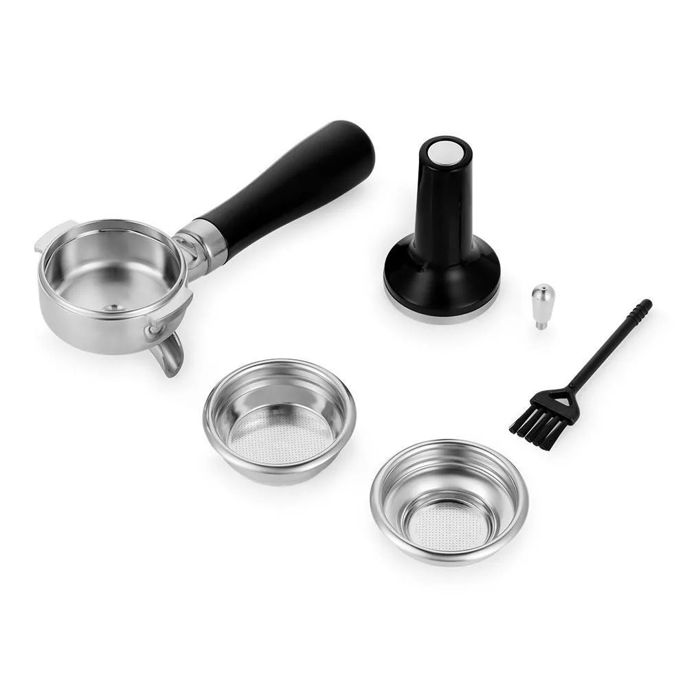 Для чистки труднодоступных мест предусмотрена щётка для чистки. В комплекте идут одинарный и двойной фильтр, темпер, рожок и специальная насадка на стимер.