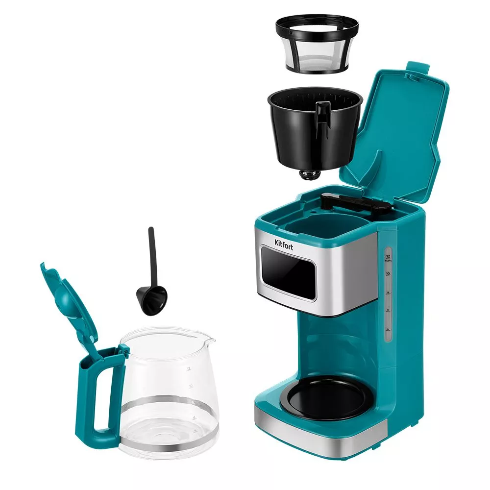 Конструкция кофеварки разборная, поэтому фильтр, воронку и кофейник можно достать и очистить после использования.