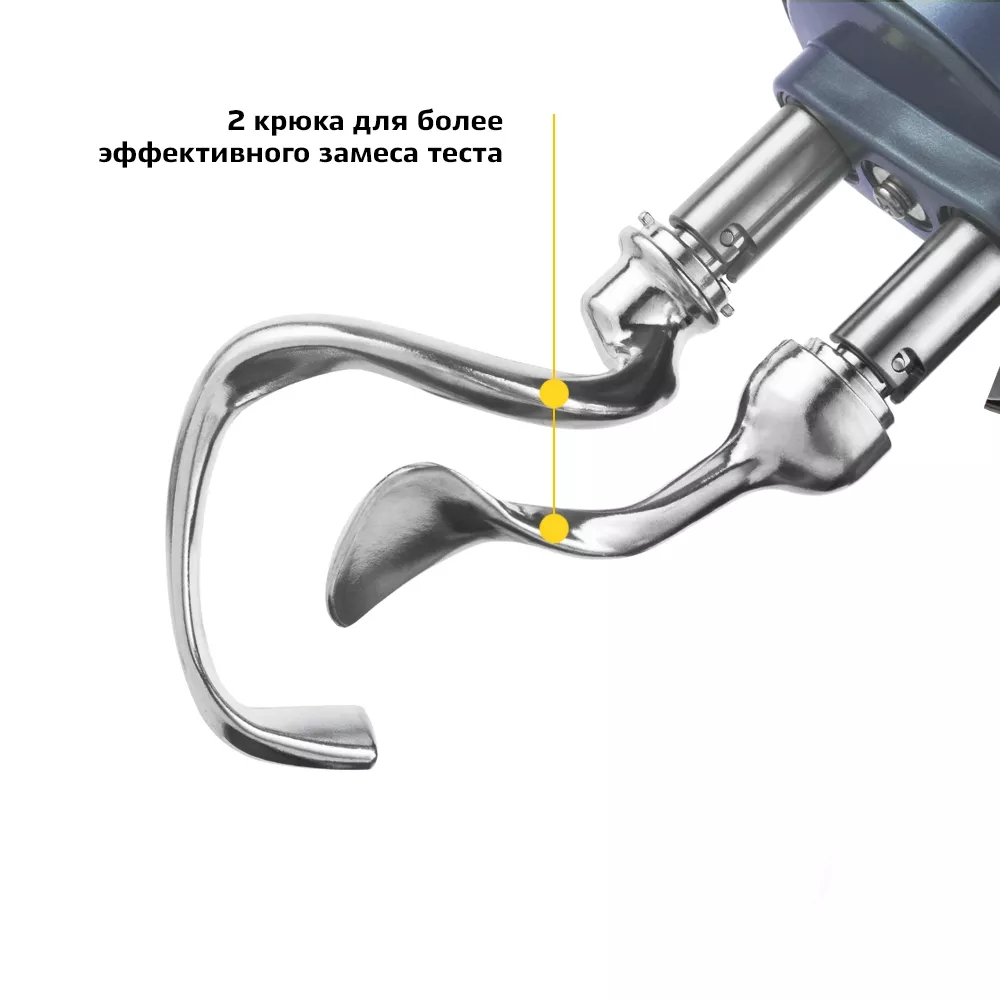 В комплекте с миксером идут 3 насадки: венчик для взбивания, крюки для тугого теста и насадка для перемешивания.