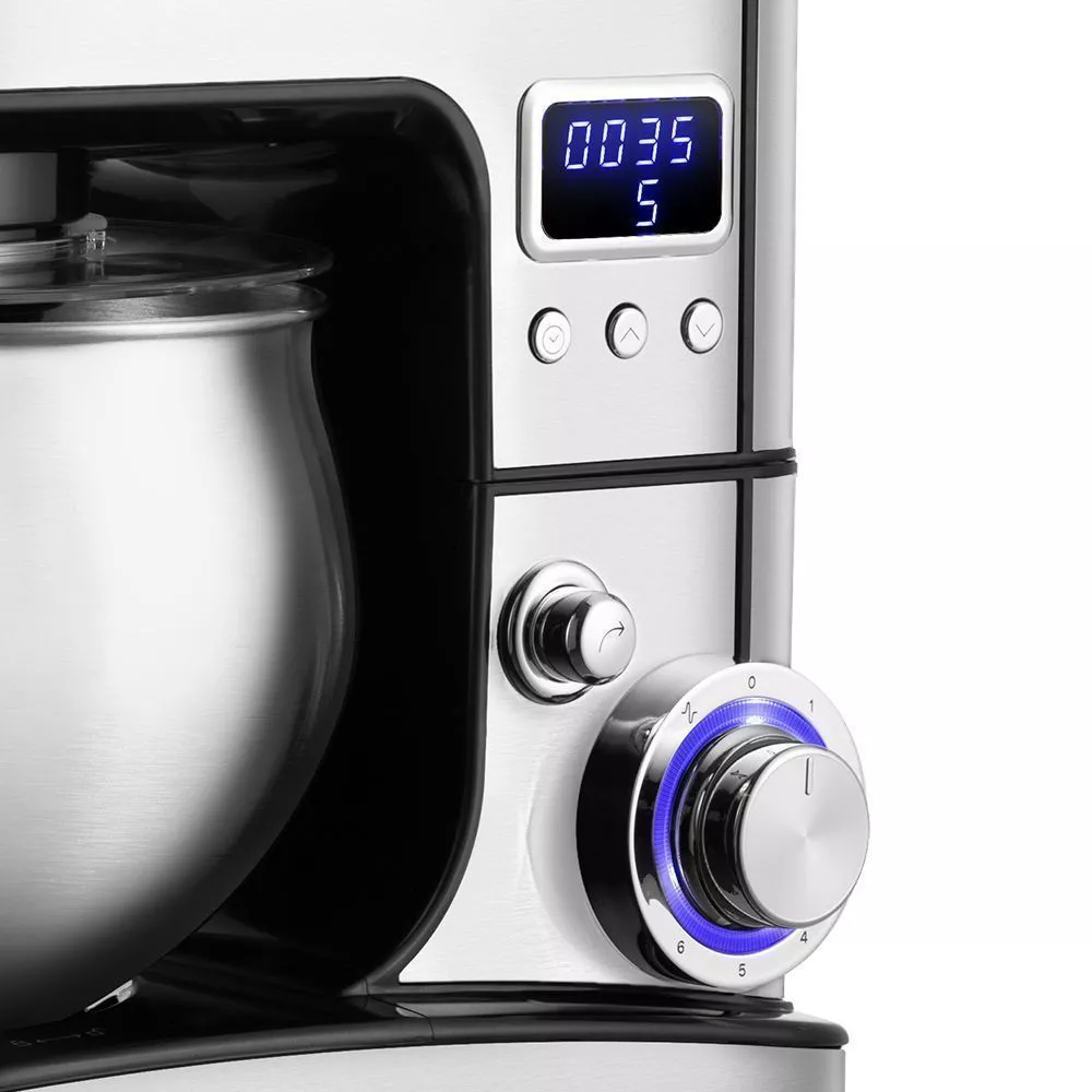 Миксер оснащён чашей ёмкостью 5 литров. Чаша изготовлена из нержавеющей стали, она прочная и в ней можно смешивать даже горячие ингредиенты. Чаша закрепляется на базе и укомплектована защитной крышкой с загрузочным отверстием.