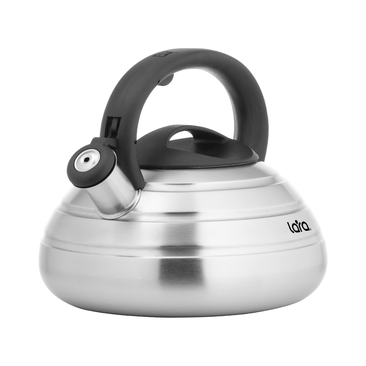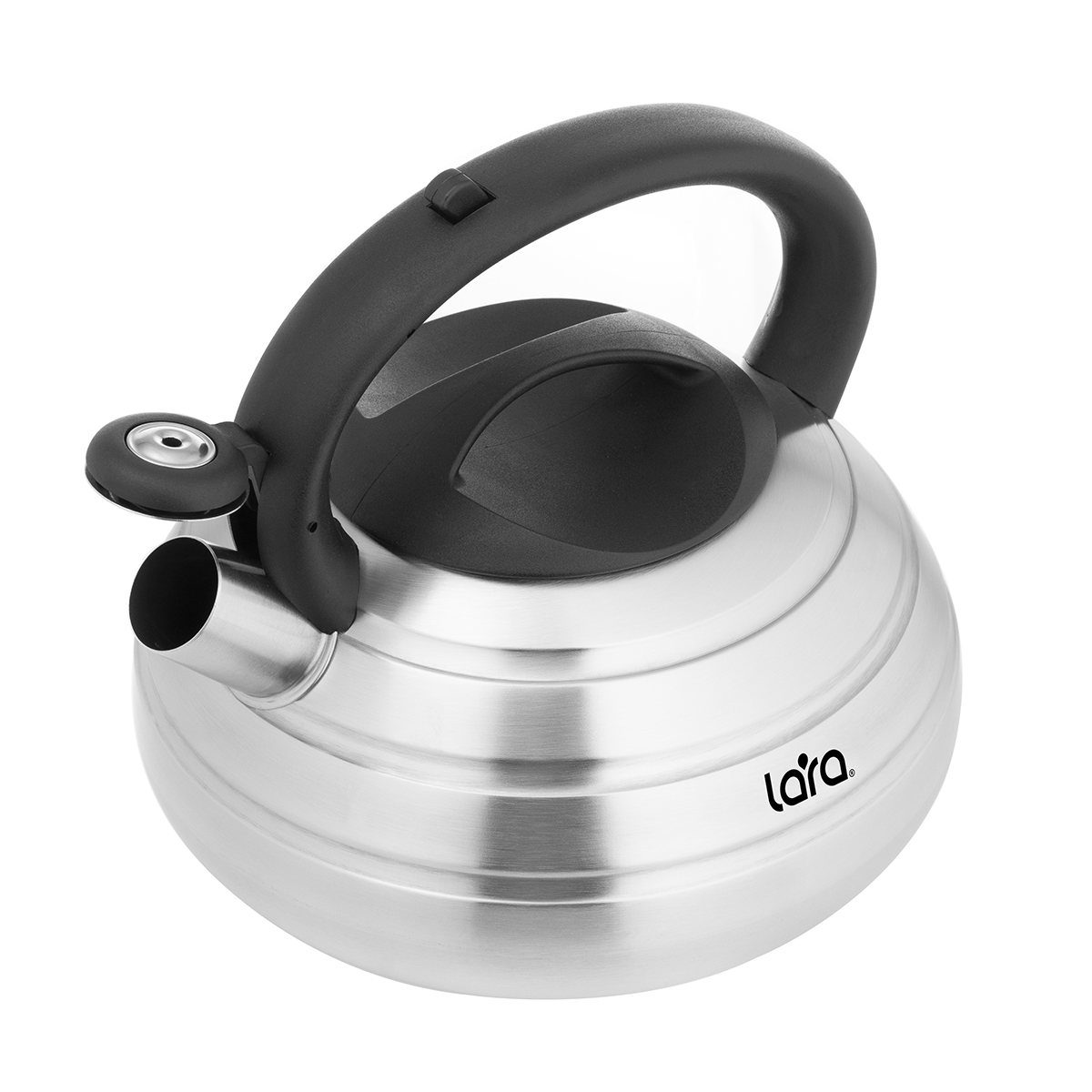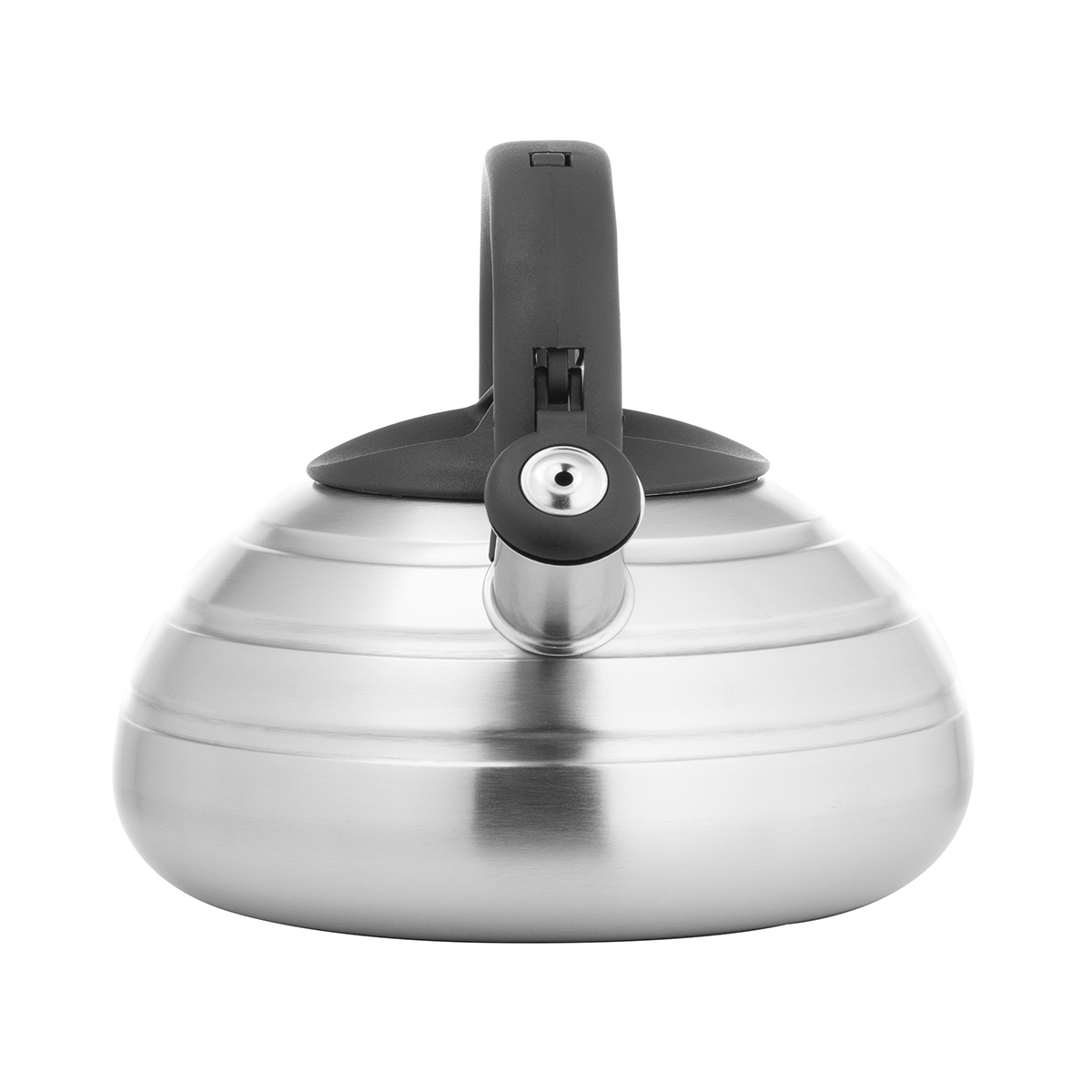 Для чайника выбраны экологически чистые и безопасные материалы: для корпуса использована высококачественная нержавеющая сталь, эргономичная ручка и крышка выполнены из ненагревающегося нейлона. Свисток с безопасным кнопочным механизмом на ручке. Индукционное дно подходит для всех типов кухонных плит.