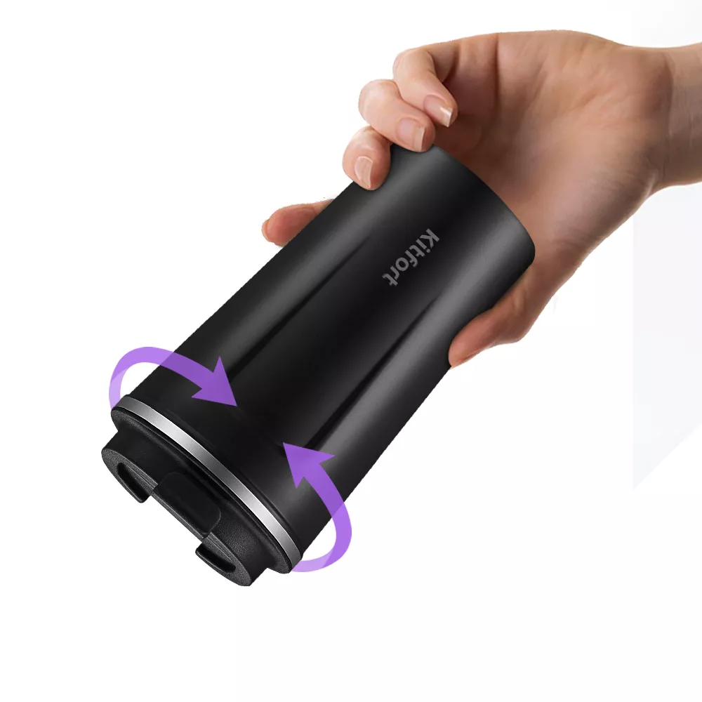 В крышке есть клапан, который позволяет пить, не снимая крышку — это делает термокружку удобной. А герметичная крышка и уплотнительное кольцо плотно прилегают друг к другу, что не позволяет жидкости вытечь наружу. Термокружка имеет простую конструкцию, которую легко разбирать и просто мыть.
