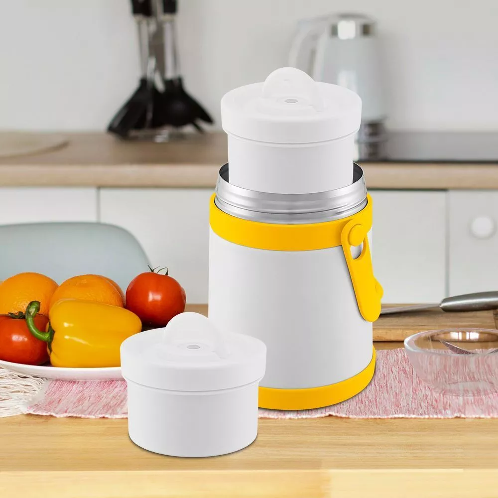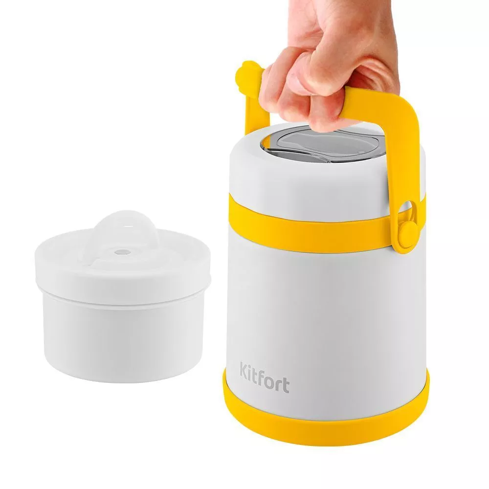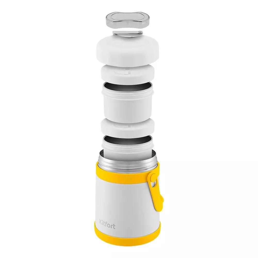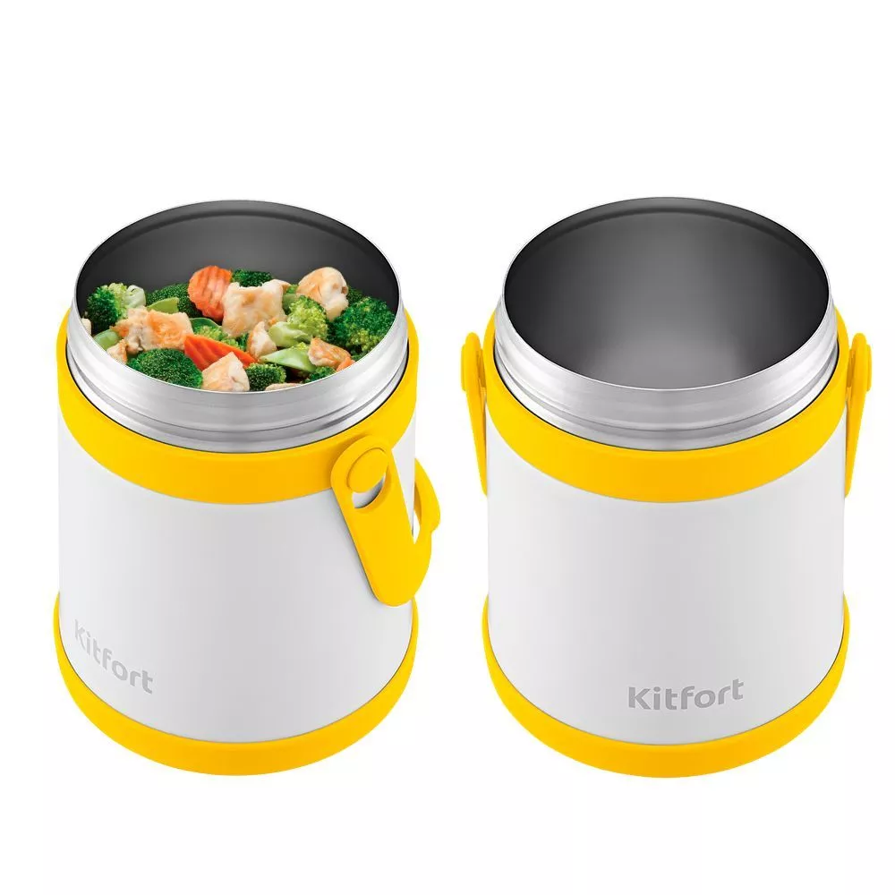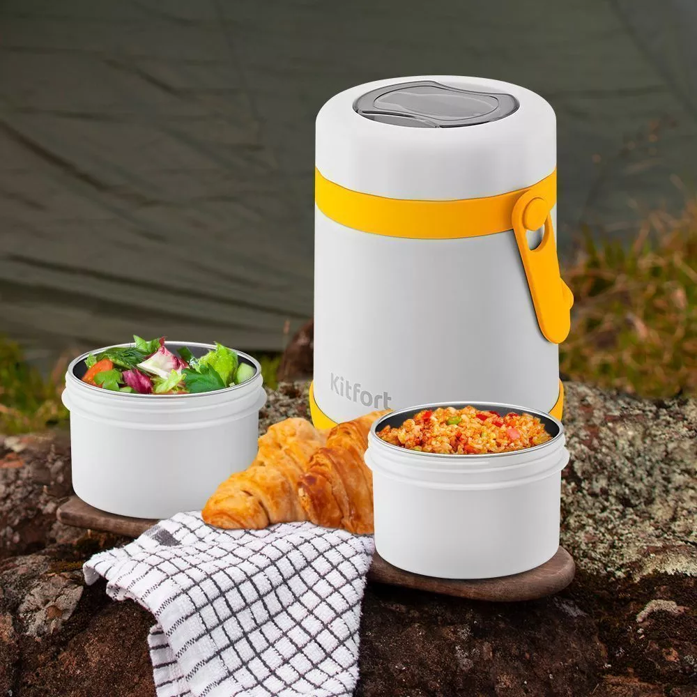 Контейнер состоит из двух частей: сам пластиковый контейнер и внутренняя чаша из нержавеющей стали, что позволяет лучше сохранять тепло и избежать контакта еды с пластиковыми частями. Вы можете использовать ланч-бокс без контейнеров. Благодаря колбе из нержавеющей стали ланч-бокс хорошо сохраняет температуру. Ёмкость КТ-1241 без контейнеров составляет 1,5 литра.