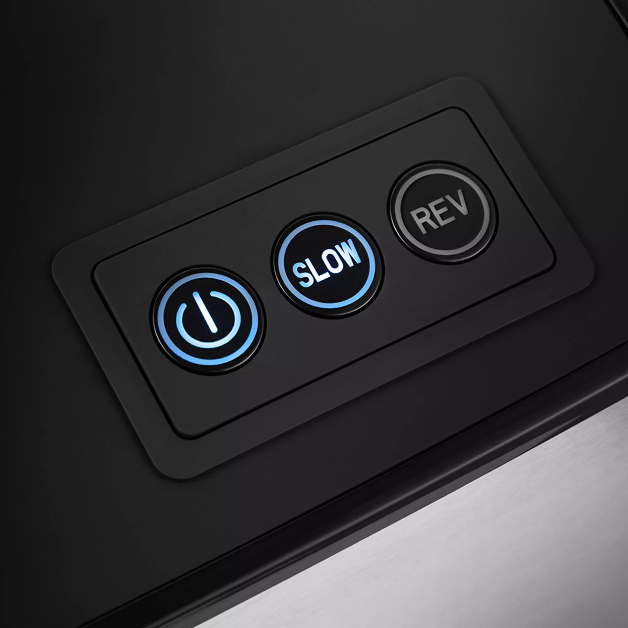 Мясорубка имеет функцию реверса. Если жилки и мясные волокна заблокируют шнек, с помощью обратного хода вы сможете извлечь их, не разбирая рабочую камеру. Для работы на пониженных оборотах шнека предусмотрена функция SLOW.