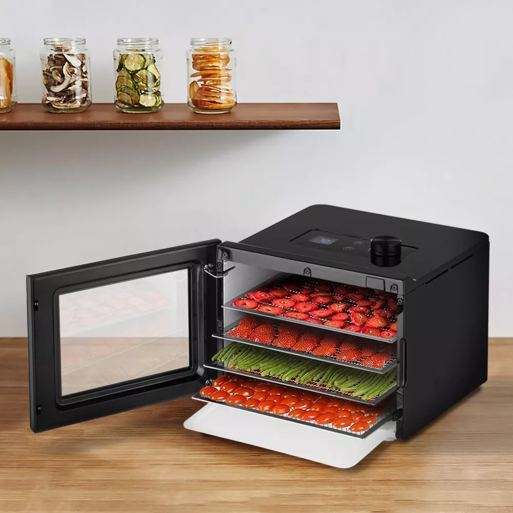 Сушилка имеет в комплекте 4 поддонов для сушки и 1 поддон для жидкости. Поддоны для сушки выполнены из нержавеющей стали.