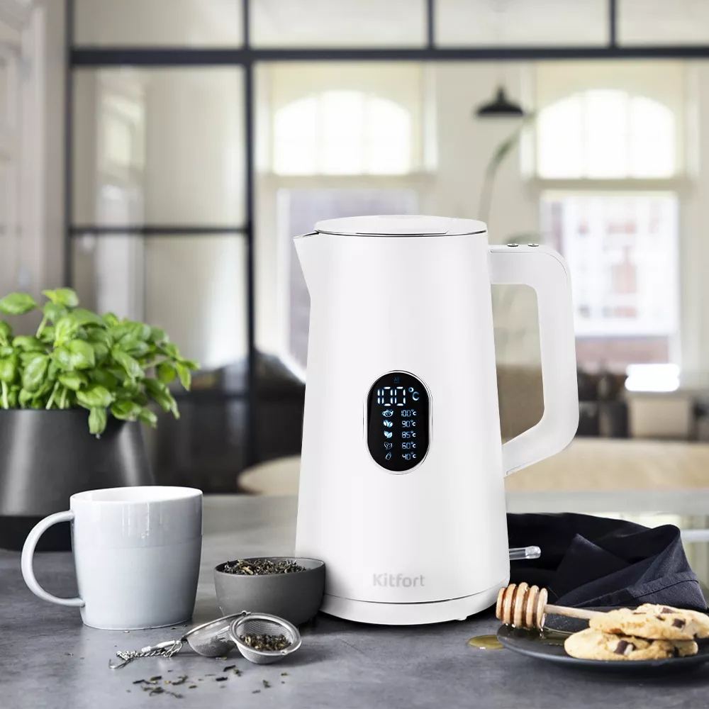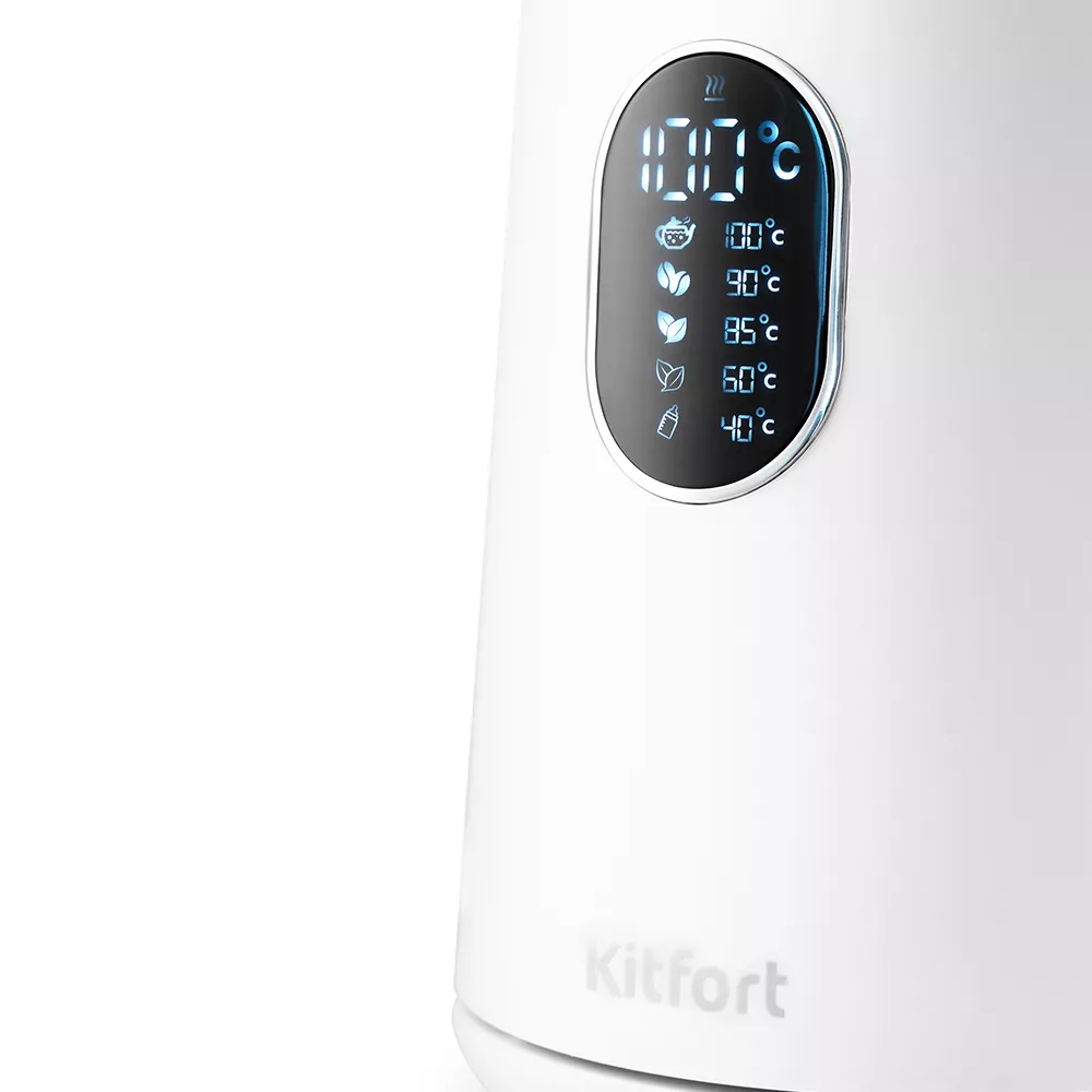 На корпусе чайника находится LED-дисплей, показывающий температуру воды внутри устройства. Чайник оснащён функцией поддержания температуры воды, которая контролируется термодатчиком, встроенным в дно чайника.