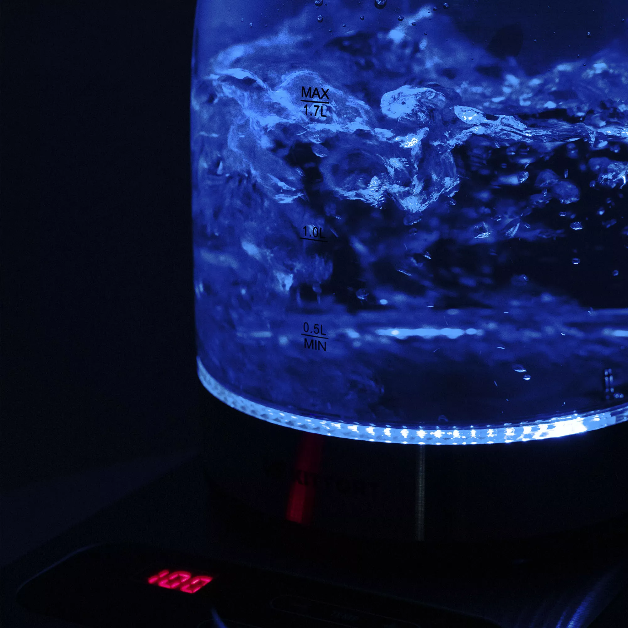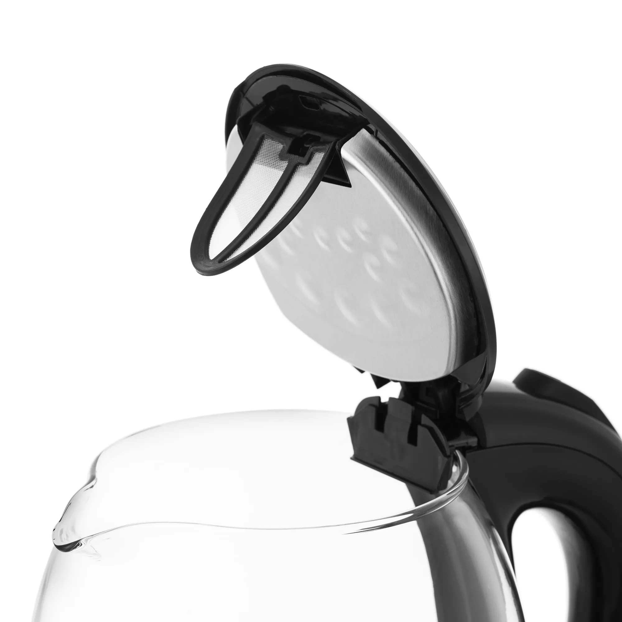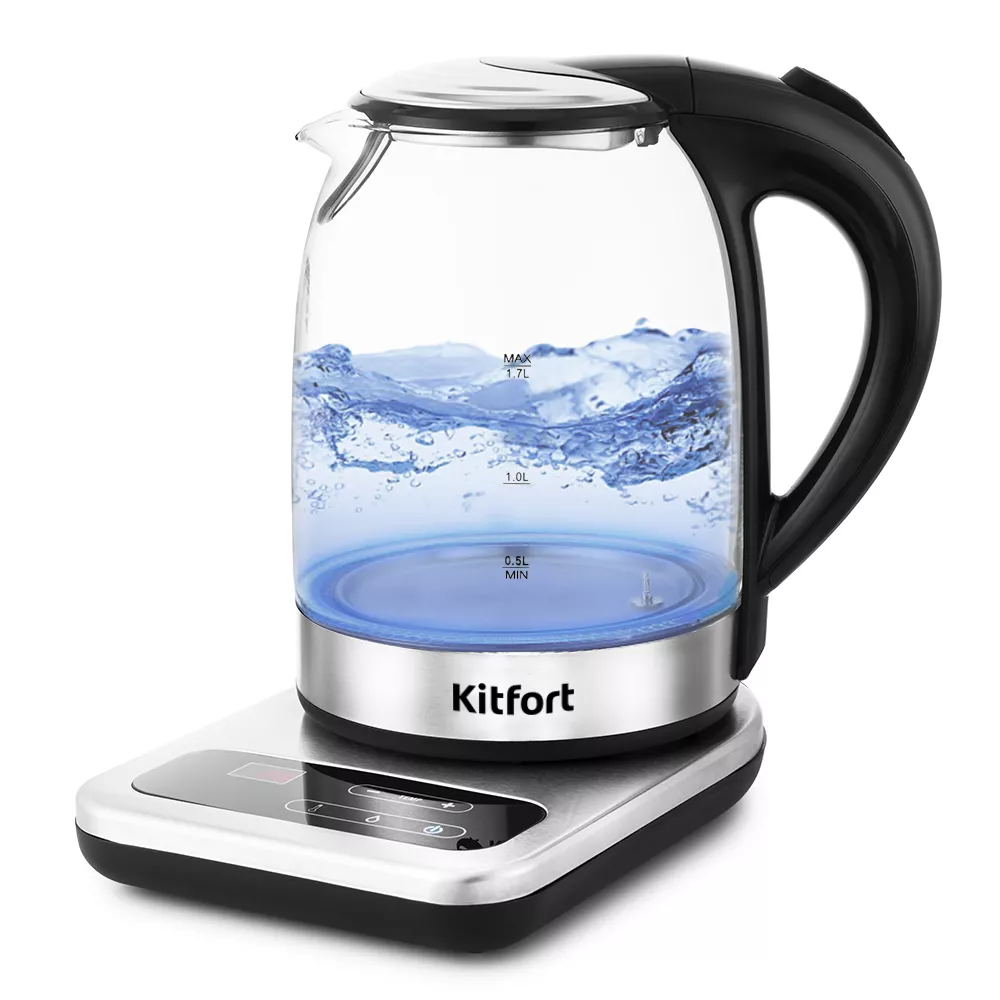 Корпус и крышка чайника выполнены из стекла, а ручка и подставка — из сочетания пластмассы и нержавеющей стали.