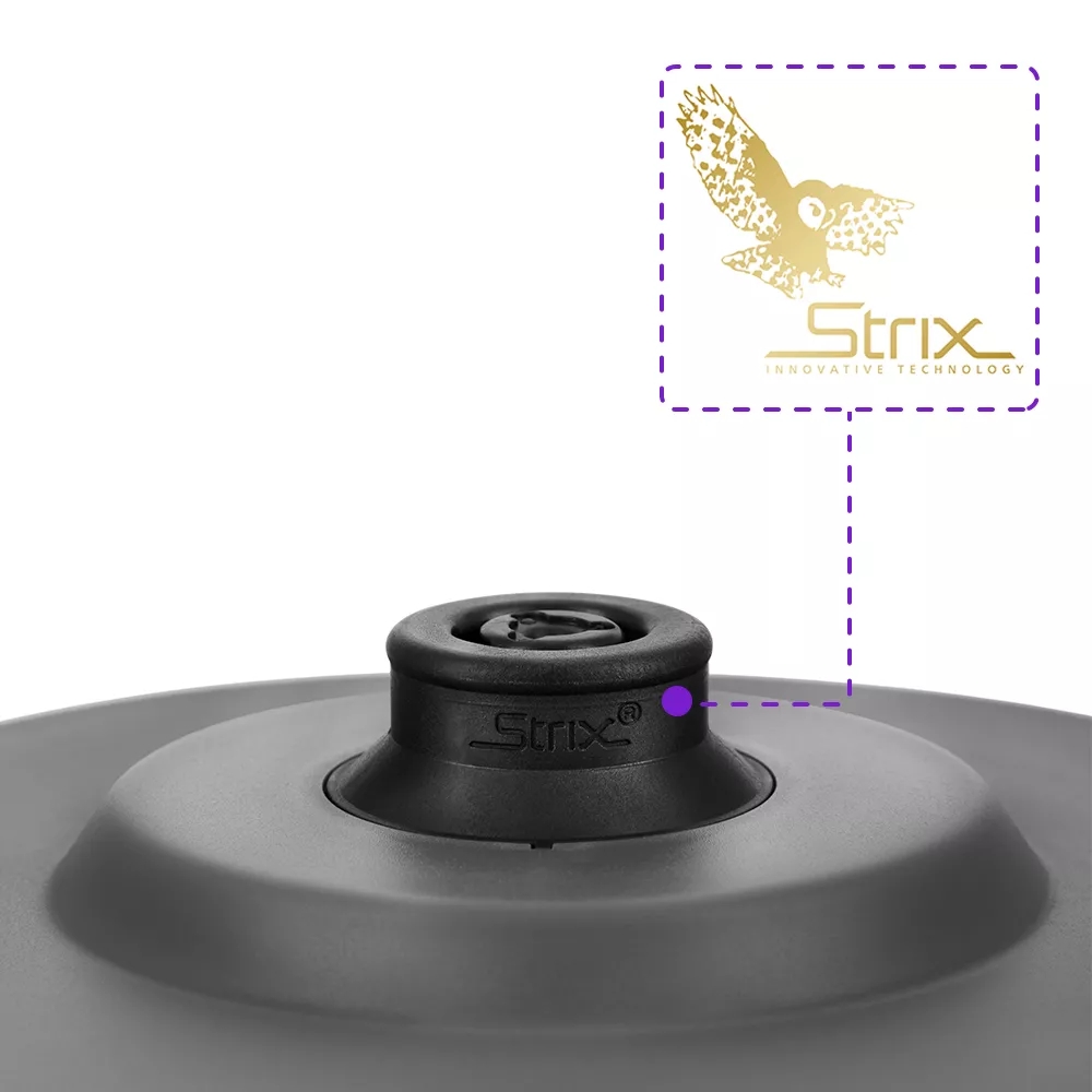 Чайник оснащён контроллером Strix - № 1 среди поставщиков компонентов для электрочайников. Он устраняет риски короткого замыкания и возгорания прибора. Обеспечивает защиту при закипании и при включении чайника без воды.