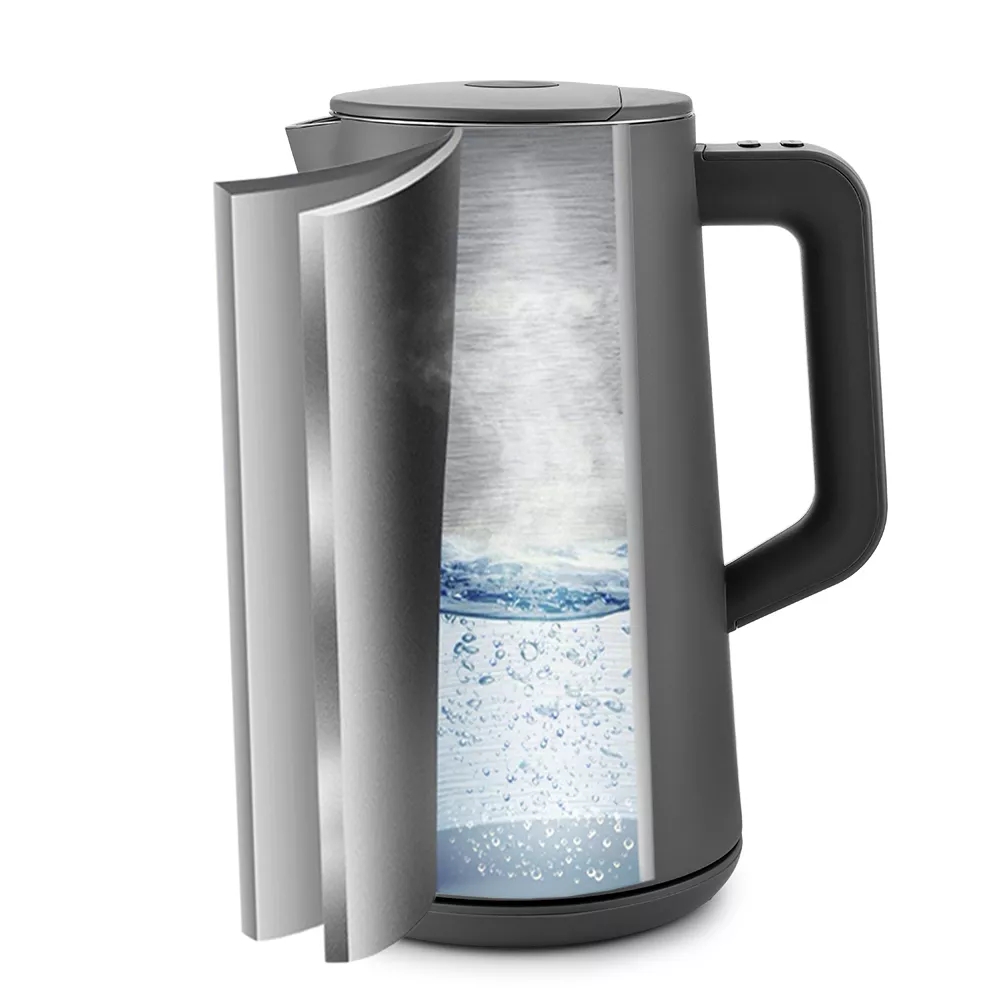 Корпус чайника двойной: внутри он выполнен из нержавеющей стали SUS304, а снаружи защищен прочным пластиком, что предотвращает опасность обжечься, а также делает чайник более экономичным, так как двойной корпус лучше сохраняет тепло.